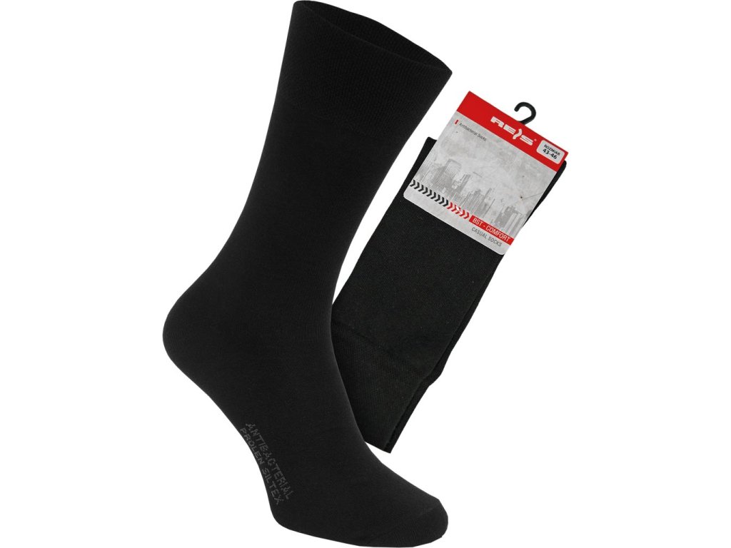 Prírodno bavlnené ponožky REIS na každodenné použitie. - 90 % prírodná bavlna, 8 % Prolen Siltex, 2 % Lycra - Priadza Prolen Siltex zabraňuje nepríjemným zápachom a zaisťuje maximálnu hygienu - Dvojitá manžeta bez tlaku zaisťuje pohodlie - Päta v tvare Y - špeciálne tvarovaný úplet sa dokonale prispôsobí chodidlu a stabilizuje ho - Plochý šev v oblasti prstov - zabraňuje odieraniu nad prstami, a to aj v extrémnych podmienkach - Každý pár sa dodáva s vešiakom, vďaka čomu vyzerajú skvele a sú ideálne na všetky druhy prezentácií