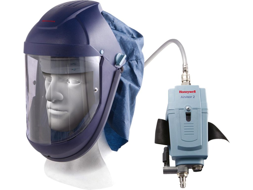 Dýchací prístroj na stlačený vzduch AIRVISOR 2 MV. - Kompletná sada s acetátovým priezorom odolným voči chemikáliám - Dva jednorazové kryty priezoru - Látková kapucňa a chránič krku - Vrátane bedrového pásu a tašky na prenášanie - Pre aplikácie vystavené chemikáliám - Minimálny prietok vzduchu 260 l/min - Optimálna regulácia prietoku k priezoru - Alarm nízkeho prietoku - Filter s aktívnym uhlím: zachytáva pachy - Spĺňa požiadavky normy EN14594Dodatočné parametre
