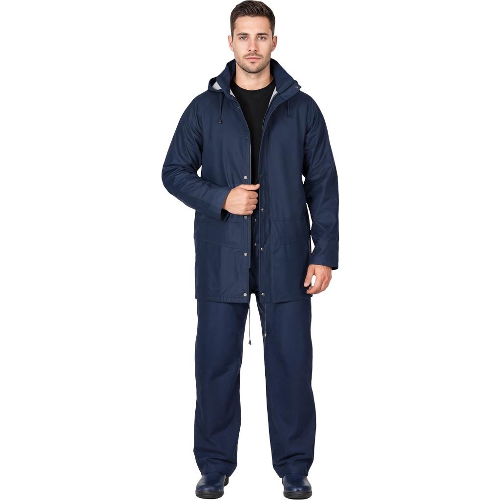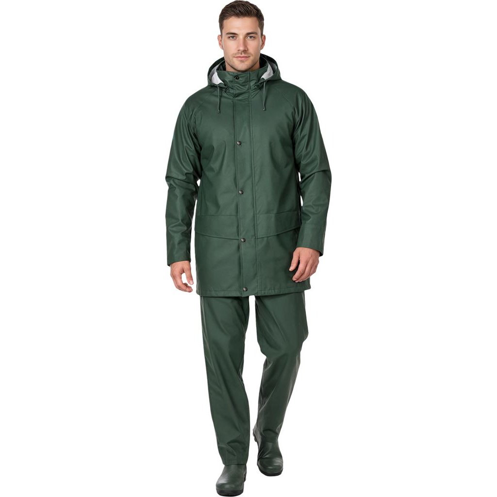 Vysokokvalitný pršiplášť vyrobený z vysoko odolného a flexibilného materiálu REIS. - Vyrobené z PU/PVC - Hrúbka: 0,50 mm - Polyesterová podšívka - Flexibilná, takže neobmedzuje pohyb a poskytuje veľkú voľnosť a pohodlie počas nosenia - Bunda a nohavice balené v taške so zapínaním na patentný cvok a ďalším vešiakom - Bunda: Zapínanie na zips s dodatočnou chlopňou na patentný cvok tesne prekrýva rozparky zipsov, aby sa zabránilo vniknutiu dažďa a vetra. Kapucňa so sťahovacími šnúrkami skrytými v golieri. Dve veľké vrecká v spodnej časti bundy s chlopňami, ktoré zabraňujú vniknutiu vody. Vo vnútri rebrované manžety poskytujú vynikajúcu ochranu pred vetrom. Sťahovacia šnúrka v spodnej časti bundy. Vetracie systémy na chrbte a pod pazuchami zabezpečujú nevyhnutnú cirkuláciu vzduchu. - Nohavice: Elastický pás. Ďalšie chlopne v páse umožňujú nastaviteľné strih. Nohavice so zipsami na patentný cvok vám umožňujú nastaviť ich šírku, aby utesnili spodnú časť nohavíc alebo uľahčili obúvanie gumákov. Ideálne do nepriaznivého počasia.