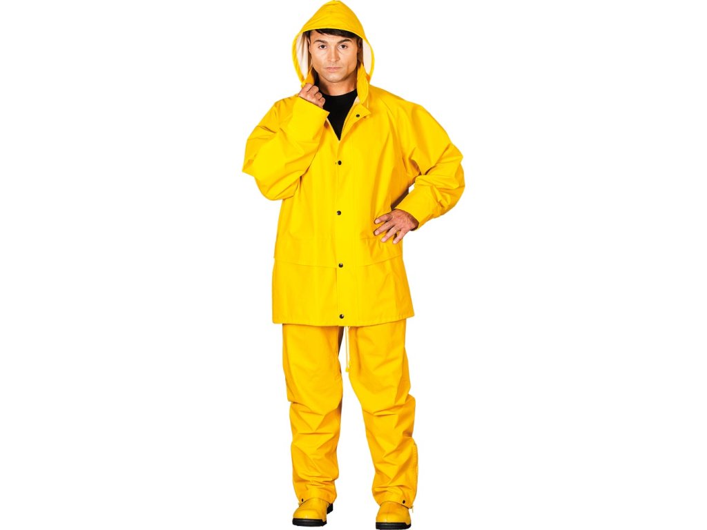 Vysokokvalitný pršiplášť vyrobený z vysoko odolného a flexibilného materiálu REIS. - Vyrobené z PU/PVC - Hrúbka: 0,50 mm - Polyesterová podšívka - Flexibilná, takže neobmedzuje pohyb a poskytuje veľkú voľnosť a pohodlie počas nosenia - Bunda a nohavice balené v taške so zapínaním na patentný cvok a ďalším vešiakom - Bunda: Zapínanie na zips s dodatočnou chlopňou na patentný cvok tesne prekrýva rozparky zipsov, aby sa zabránilo vniknutiu dažďa a vetra. Kapucňa so sťahovacími šnúrkami skrytými v golieri. Dve veľké vrecká v spodnej časti bundy s chlopňami, ktoré zabraňujú vniknutiu vody. Vo vnútri rebrované manžety poskytujú vynikajúcu ochranu pred vetrom. Sťahovacia šnúrka v spodnej časti bundy. Vetracie systémy na chrbte a pod pazuchami zabezpečujú nevyhnutnú cirkuláciu vzduchu. - Nohavice: Elastický pás. Ďalšie chlopne v páse umožňujú nastaviteľné strih. Nohavice so zipsami na patentný cvok vám umožňujú nastaviť ich šírku, aby utesnili spodnú časť nohavíc alebo uľahčili obúvanie gumákov. Ideálne do nepriaznivého počasia.