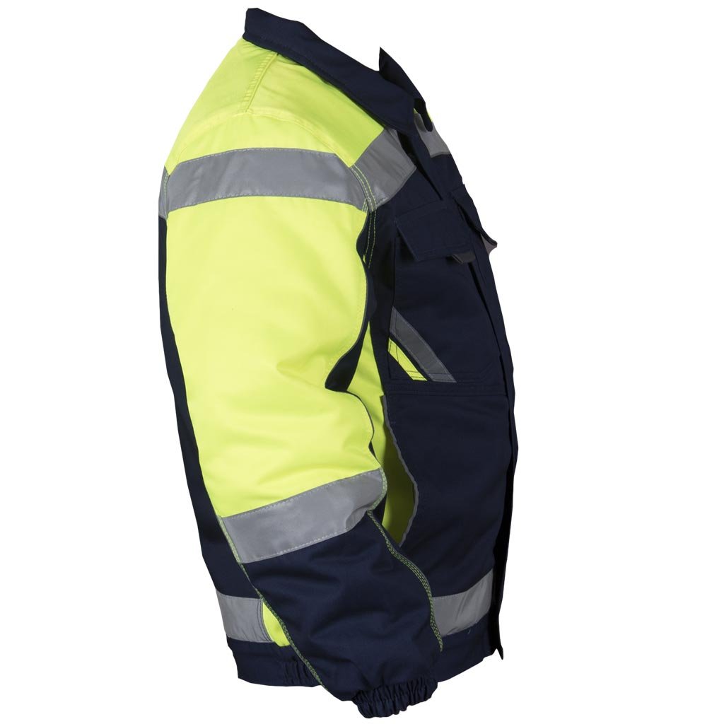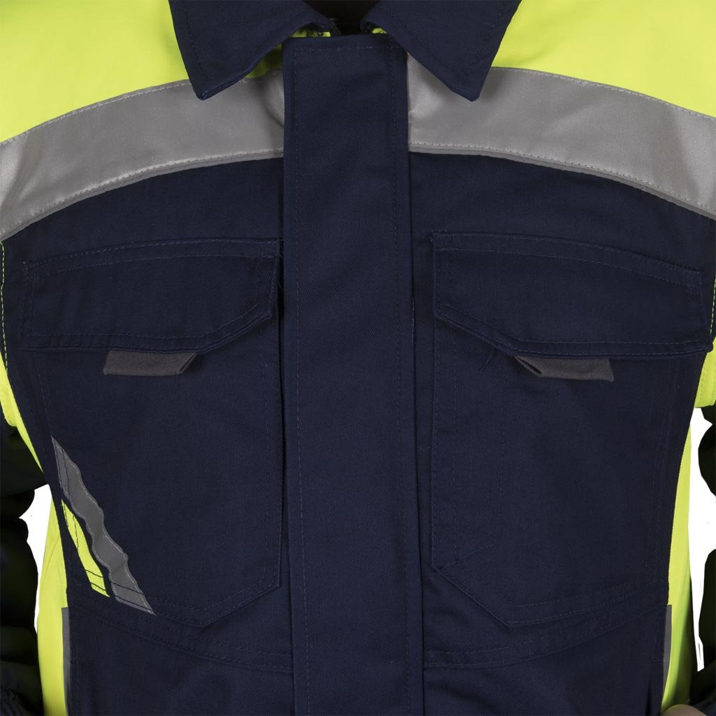 Reflexná a zateplená bunda REIS . - keprová tkanina: 65% polyester, 35% bavlna, 300 g/m² - výplň: 100% polyester, 180 g/m² - prešívaná podšívka: 100% polyester 190T taft, 85 g/m² - zips s dodatočným zapínaním na suchý zips - dve spodné vrecká a dve náprsné vrecká so zapínaním na suchý zips - vrecko na suchý zips s ďalšími priehradkami na ľavom rukáve - vnútorné vrecko - rebrované manžety - rebrované manžety po stranách - reflexné pruhy pre zvýšenú viditeľnosť - strih: REGULAR