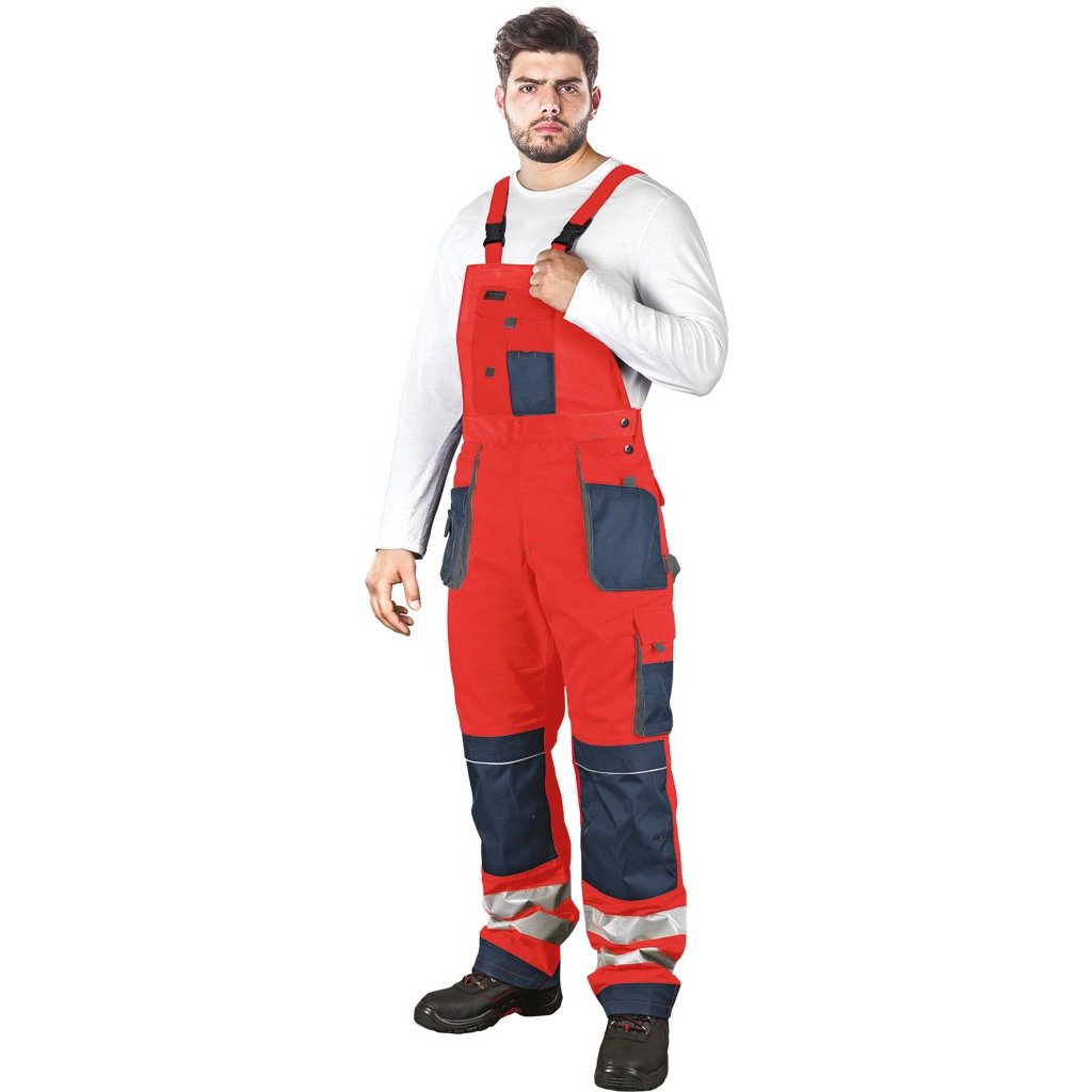 Reflexné pracovné nohavice na traky FORMEN značky L.HOLLMAN pre mužov - hlavný materiál: látka: 80% polyester, 20% bavlna (farby CSB a CGS: 100% polyester) s gramážou 270 g/m2 - výplne z kontrastnej 100% polyesterovej oxfordskej látky - dve zadné vrecká a dve dvojité bočné vrecká, z ktorých jedno je so zapínaním na suchý zips - jedno vrecko na nohavici so zapínaním na suchý zips a ďalšími vreckami na príslušenstvo, jedno pozdĺžne bočné vrecko a jedno na hrudi s vreckami na telefón a príslušenstvo - hrot na pripevnenie kľúčov - pútka na pripevnenie ďalšieho príslušenstva - nastaviteľný pás a dĺžka s trakmi - guma v zadnej časti pre väčšiu voľnosť pohybu - vrecká na chrániče kolien na kolenách - dodatočné materiálové výstuže na vreckách, kolenách a spodnej časti nohavíc - reflexné pruhy pre lepšiu viditeľnosť - testované na obsah škodlivých látok v súlade s normami OEKO-TEX® Standard 100