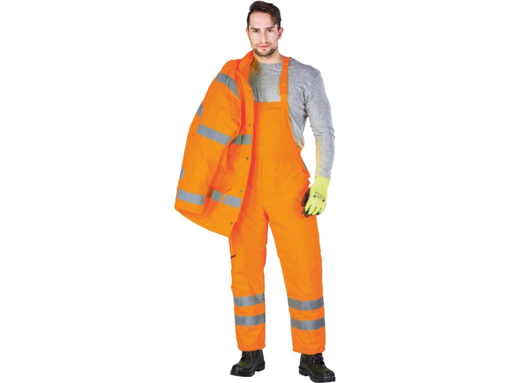 Reflexné zateplné montérky na traky REIS s reflexnými pruhmi na dolných končatinách. - 100 % polyesterová oxfordská tkanina potiahnutá polyuretánom, 180 g/m² - 100 % polyesterová podšívka, 130 g/m² - 100 % polyesterová taftová podšívka, 190T - Nastaviteľná dĺžka pomocou trakov - Dve bočné vrecká - Ďalšie vrecko v hornej časti nohavíc - Ideálne pre cestárov a ľudí pracujúcich na cestách.