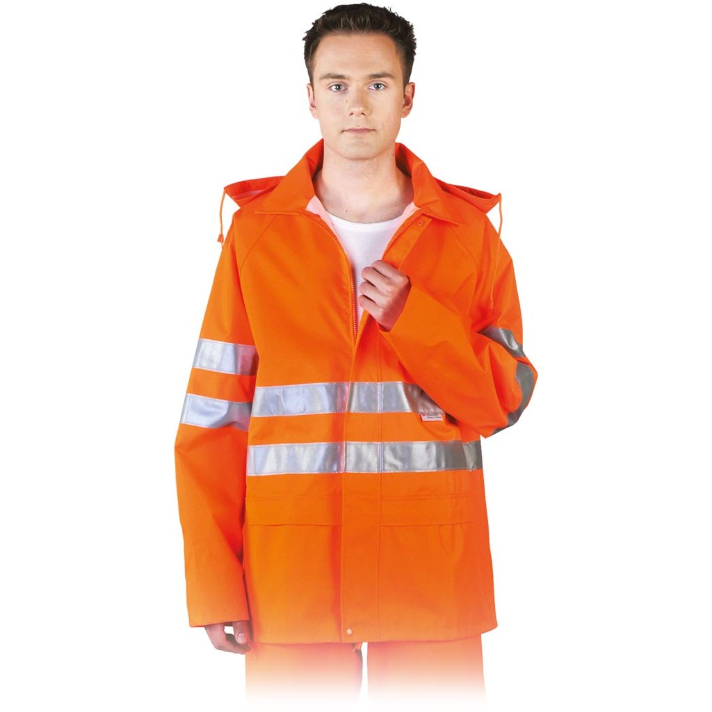 Reflexný pršiplášť L.HOLLMAN. - Vrchný materiál: 100% polyester 300D Oxford s polyuretánovým povrchom - Reflexné pruhy 3M Scotchline - dva na rukávoch a dva na bunde pre zvýšenú viditeľnosť - Nepremokavý náter poskytuje vynikajúcu ochranu pred dažďom a zároveň umožňuje pokožke dýchať - Zapínanie na zips a ďalšie patentné gombíky s možnosťou stiahnutia kapucne v spodnej časti pomocou sťahovacích šnúrok - Kapucňa so zipsami v golieri a stahovacími pásikmi - Dve vrecká skryté v záhyboch - Švy dodatočne podlepené zvnútra, aby sa zabránilo vniknutiu vody - Patentné gombíky na rukávoch umožňujú nastaviteľnú šírku - Špeciálny strih bundy na chrbte zaisťuje prúdenie vzduchu bez rizika vniknutia vody - Ideálne na prácu na cestách a do oblastí, kde musí byť používateľ jasne viditeľný - Balené vo vrecku na zips, ktoré možno použiť na prepravu iných predmetov - Spĺňa požiadavky normy EN ISO 20471 (trieda 3)