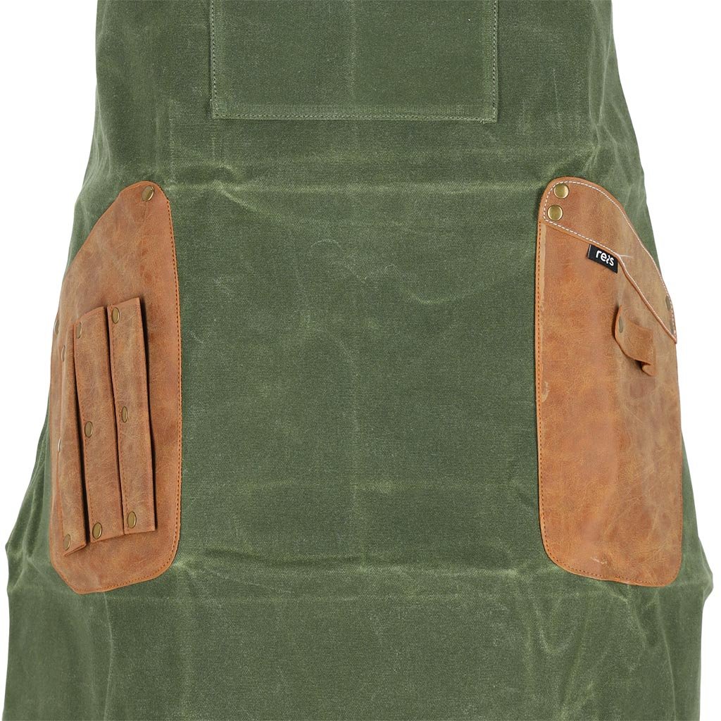 Pánska remeselnícka zástera REIS. - Voskovaná plátenná tkanina: 70 % bavlna, 30 % polyester - Vložky z PU syntetickej kože - Zapínanie na krk s nastaviteľnou prackou - Zaväzovanie vzadu na opasok pre lepšie prispôsobenie - Dve spodné vrecká s priehradkami a pútkom na kladivo a jedno náprsné vrecko so zapínaním na patentný cvok - Určené pre remeselníkov