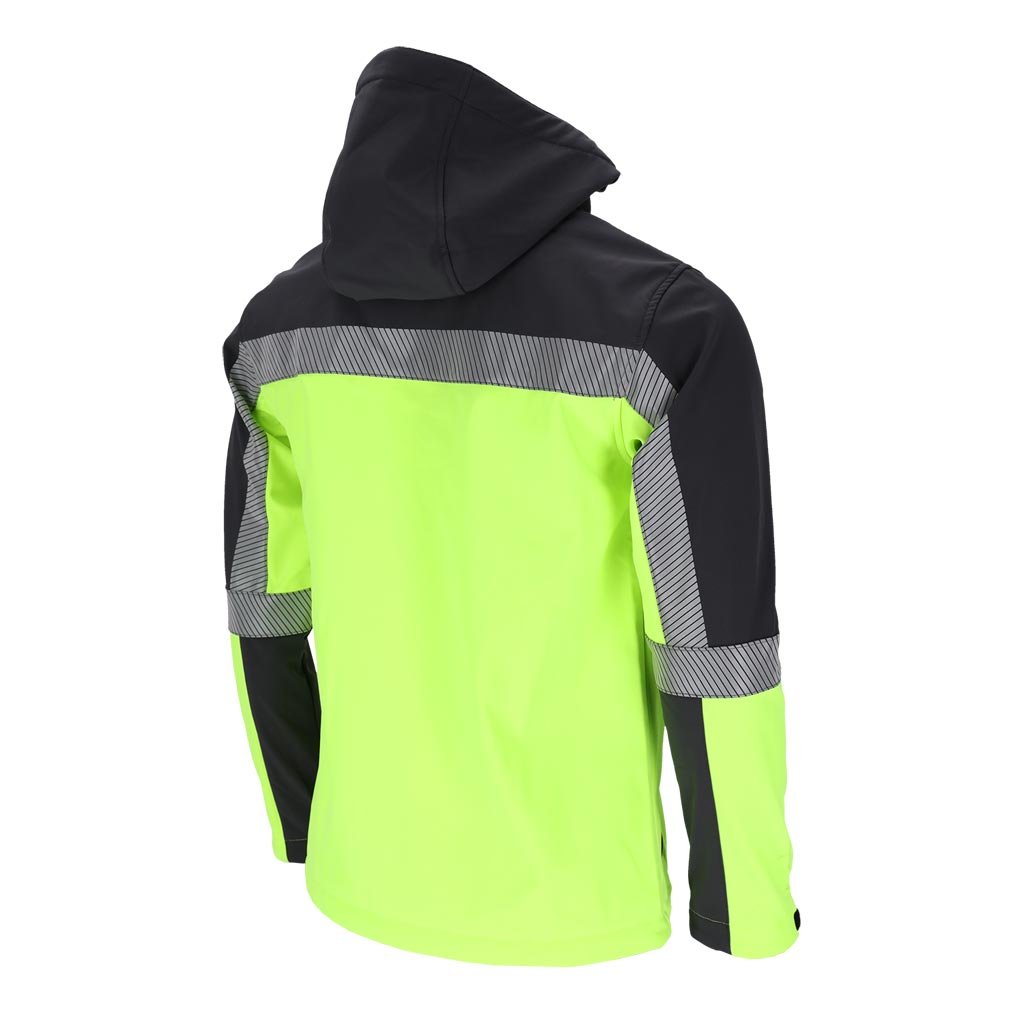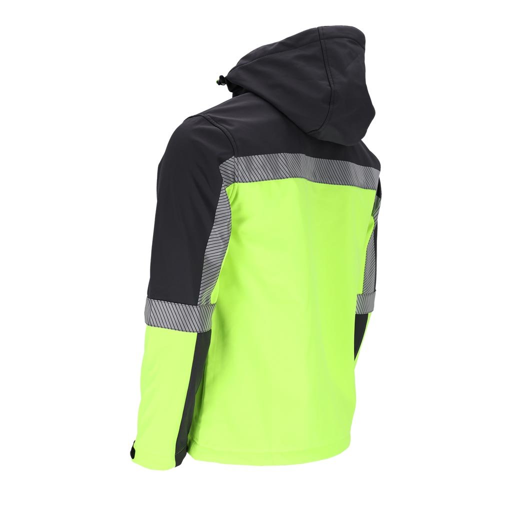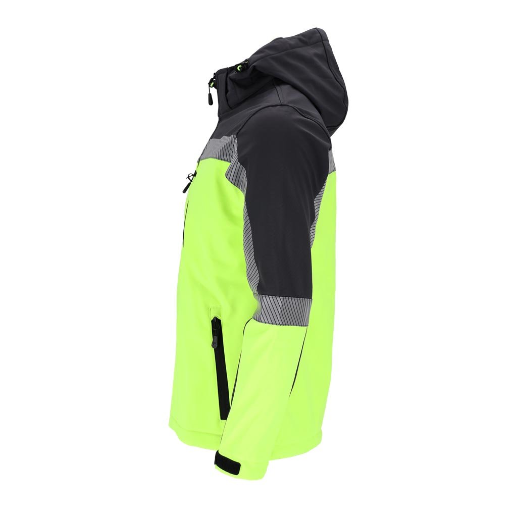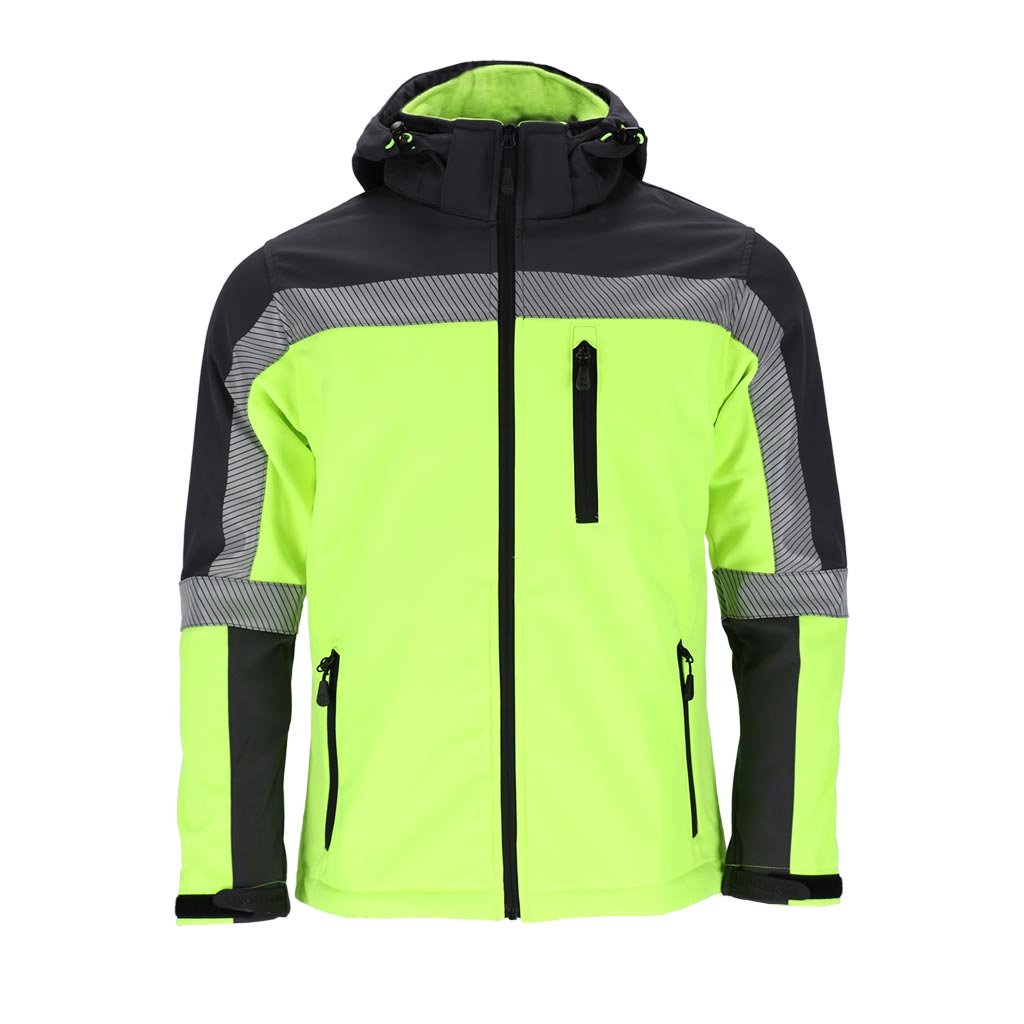 Softshellová pracovná bunda pre mužov ideálna do nepriaznivých pracovných podmienok. - Trojvrstvový softshellová tkanina: 96 % polyester, 4 % elastan, TPU membrána, 100 % polyesterový fleece - gramáž 280 g/m² - materiál SOFTSHELL - chráni pred dažďom a vetrom a zároveň umožňuje pokožke dýchať - zapínanie na zips - odnímateľná kapucňa - dve spodné vrecká a náprsné vrecko so zipsami - zapínanie na suchý zips - sťahovacie šnúrky v spodnej časti bundy - reflexné prvky pre lepšiu bezpečnosť