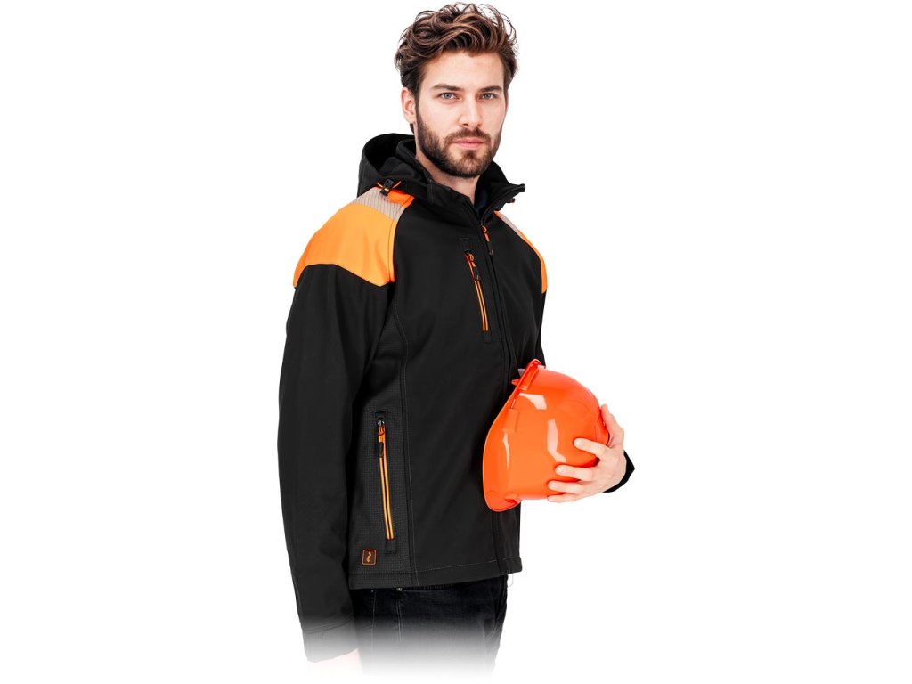 Softshellová bunda s reflexnými prvkami REIS. - Hlavný materiál: trojvrstvová softshellová tkanina 96 % polyester, 4 % elastan, TPU membrána, 100 % polyesterový fleece, 300 g/m² - Vložky: 100 % polyesterová tkanina, 230 g/m² - SOFTSHELL materiál - chráni pred dažďom a vetrom a zároveň umožňuje pokožke dýchať - Zapínanie na zips - Stojatý golier zateplený fleecom - Odnímateľná kapucňa, stiahnutá šnúrkami a dodatočným zapínaním na suchý zips pre lepšiu ochranu hlavy pred chladom - Dve spodné vrecká a jedno náprsné vrecko so zipsom - Rukávy zakončené elastickými manžetami na vnútornej strane - Spodná časť bundy sa dá stiahnuť zvnútra šnúrkami - Reflexné prvky - Ideálna nielen do práce, ale aj na šport