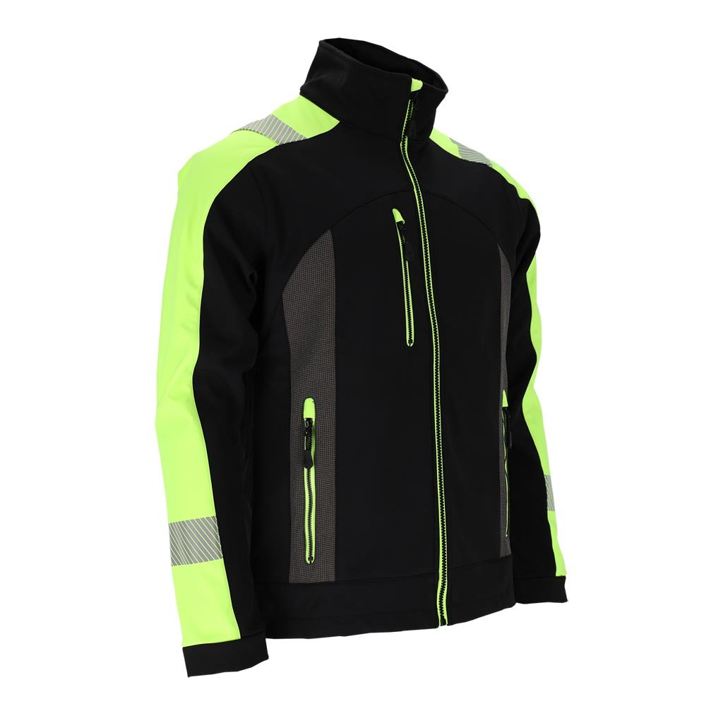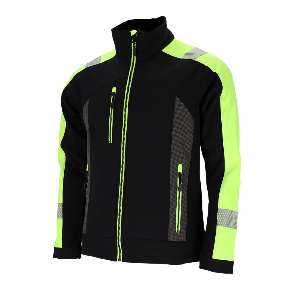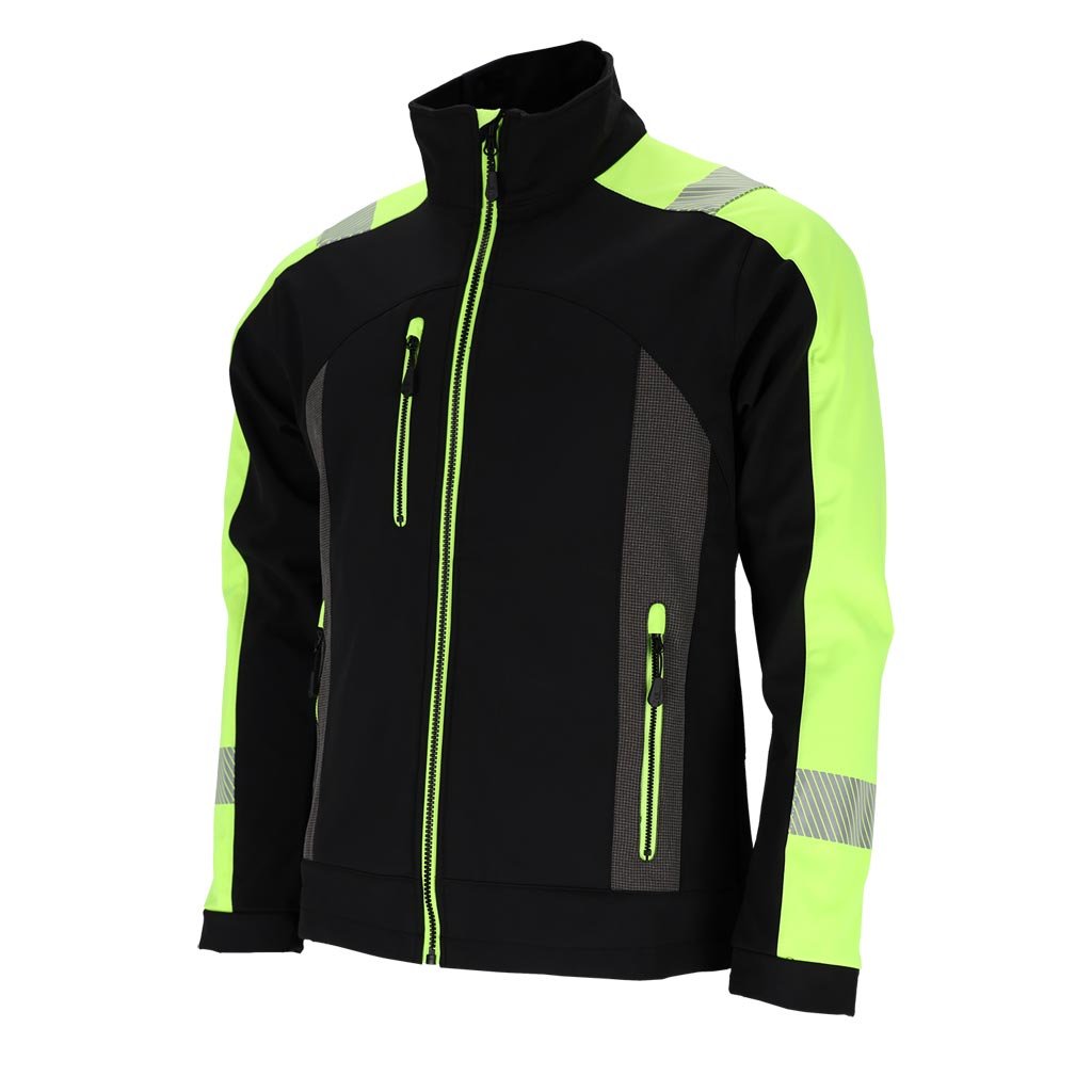 Pánska softshellová bunda s reflexnými prvkami značky L.HOLLMAN. - Hlavný materiál: trojvrstvová softshellová tkanina 94 % polyester, 6 % elastan, TPU membrána, 100 % polyesterový fleece, 280 g/m² - Žlté vložky: 100 % polyesterový úplet, 280 g/m² - SOFTSHELL materiál - chráni pred dažďom a vetrom a zároveň umožňuje pokožke dýchať - Zapínanie na zips - Dve spodné vrecká a náprsné vrecko so zipsom - Nastaviteľný spodný lem so sťahovacími šnúrkami - Reflexné prvky pre bezpečnosť - Ideálna do práce aj na šport - Strih: REGULAR