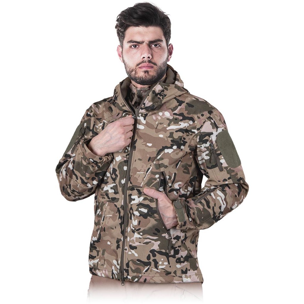 Pánska pracovná bunda Tactical Guard REIS. - Trojvrstvová softshellová tkanina: 100% polyester, TPU membrána, 100% polyesterový fleece - gramáž 310 g/m² - SOFTSHELL materiál - chráni pred dažďom a vetrom a zároveň umožňuje pokožke dýchať - Zapínanie na zips - Kapucňa so šiltom so sťahovacími šnúrkami, ktoré sa dajú zrolovať a zaistiť dodatočným suchým zipsom na krku - Dve spodné vrecká na zips a vrecko pozdĺž spodnej časti chrbta - Tri vrecká na zips na rukávoch - Rukávy so zapínaním na suchý zips - Spodná časť bundy sa dá stiahnuť šnúrkami - Ramenné popruhy na suchý zips na rôzne emblémy a dekorácie - Určené pre vojenských nadšencov, cestovateľov a fanúšikov paintballu - Ideálne pre lesníkov a rybárov