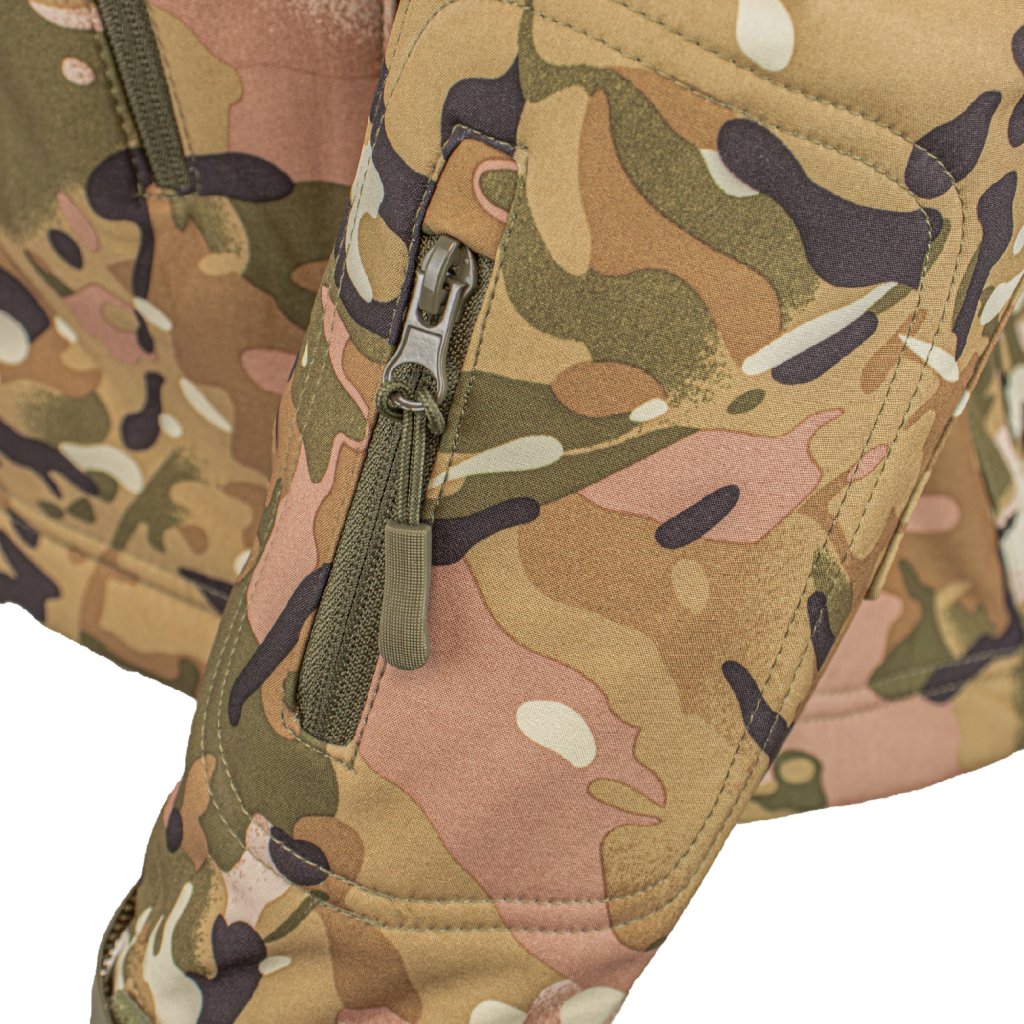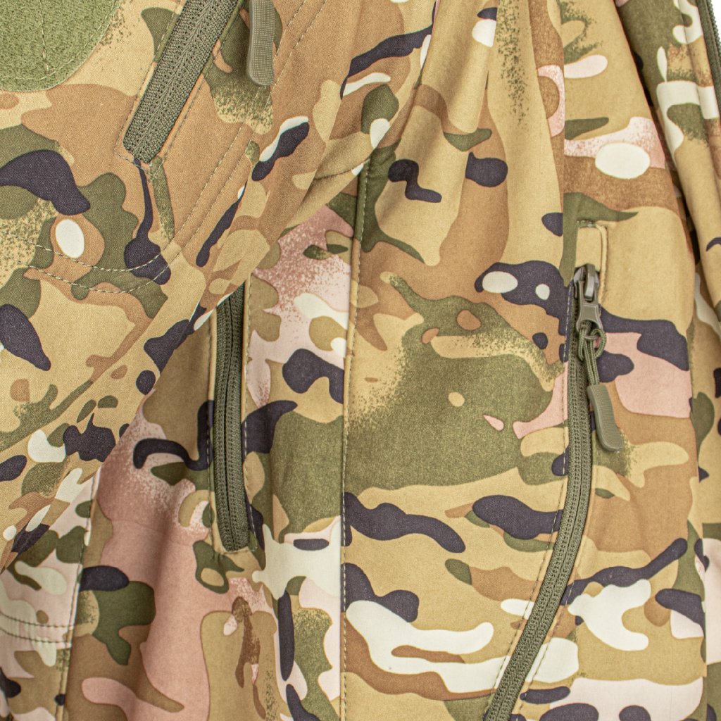 Pánska pracovná bunda Tactical Guard REIS. - Trojvrstvová softshellová tkanina: 100% polyester, TPU membrána, 100% polyesterový fleece - gramáž 310 g/m² - SOFTSHELL materiál - chráni pred dažďom a vetrom a zároveň umožňuje pokožke dýchať - Zapínanie na zips - Kapucňa so šiltom so sťahovacími šnúrkami, ktoré sa dajú zrolovať a zaistiť dodatočným suchým zipsom na krku - Dve spodné vrecká na zips a vrecko pozdĺž spodnej časti chrbta - Tri vrecká na zips na rukávoch - Rukávy so zapínaním na suchý zips - Spodná časť bundy sa dá stiahnuť šnúrkami - Ramenné popruhy na suchý zips na rôzne emblémy a dekorácie - Určené pre vojenských nadšencov, cestovateľov a fanúšikov paintballu - Ideálne pre lesníkov a rybárov