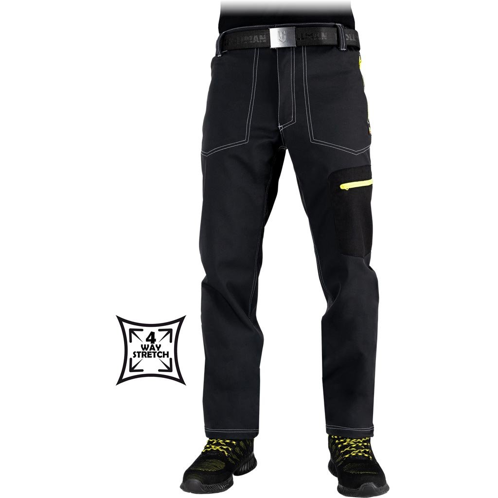 Pánske sofsthellové elastické pracovné nohavice do pása značky L.HOLLMAN. - Hlavný materiál: trojvrstvová softshellová tkanina so 4-smerným strečom 94 % polyester, 6 % elastan, TPU membrána, 100 % polyesterový fleece, 300 g/m² - Vložky: 100 % nylonová oxfordská tkanina, 200 g/m² - SOFTSHELL materiál - chráni pred dažďom a vetrom a zároveň umožňuje pokožke dýchať - 4-smerný streč - materiál, ktorý sa naťahuje všetkými smermi - Zapínanie na gombík a zips - Dve bočné vrecká so zipsom - Vrecko na zips na nohavici - Elastický pás po stranách pre lepšie prispôsobenie - Strih: REGULAR