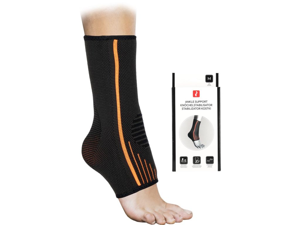Elastická podpora členku.- Vyrobené z pleteného nylonu kombinovaného s gumou