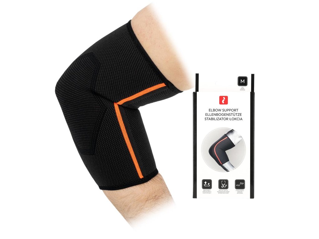 Elastická podpora lakťov.- Vyrobené z pleteného nylonu kombinovaného s gumou