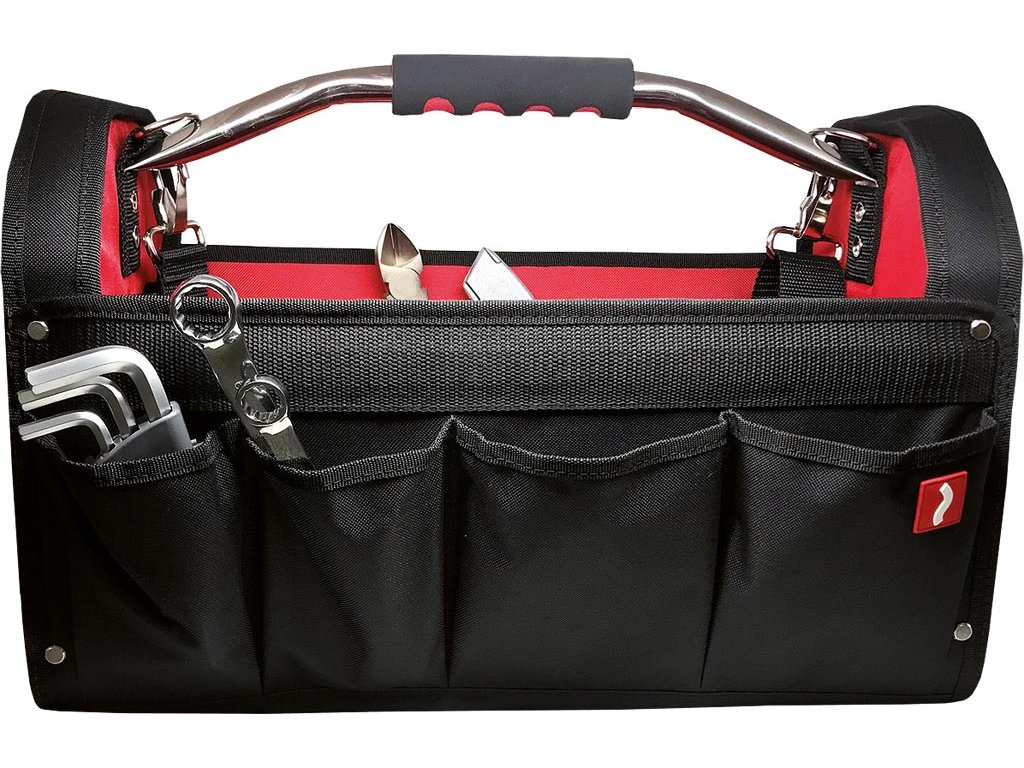 Pracovná taška na náradie REIS. - Vyrobená z polyesteru 600D - Vystužená nitmi - Jedenásť vreciek - Zapínanie na popruh vo vnútri tašky na náradie - Oceľová rukoväť na prenášanie - Prídavný ramenný popruh - Vystužená - Ideálna pre montérov