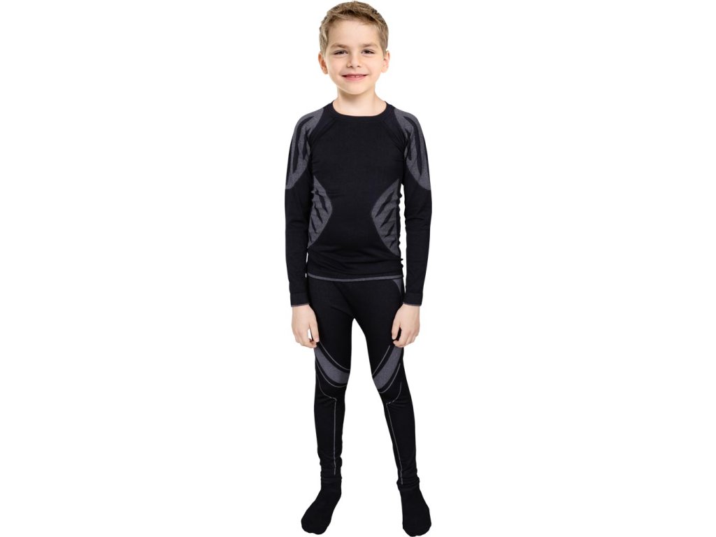 TEPLÉ termoprádlo pre deti. - Materiál: 65% nylon, 30% polyester, 5% elastan - Gramáž: 280 g/m² - Set obsahuje tričko s dlhým rukávom a nohavice s moderným dizajnom - Zaisťuje optimálnu telesnú teplotu a pohodlie - presne sa prispôsobí tvaru tela, poskytuje termoreguláciu a mechanickú ochranu a zároveň umožňuje neobmedzený pohyb - Rebrované manžety na rukávoch a noháchDodatočné parametre