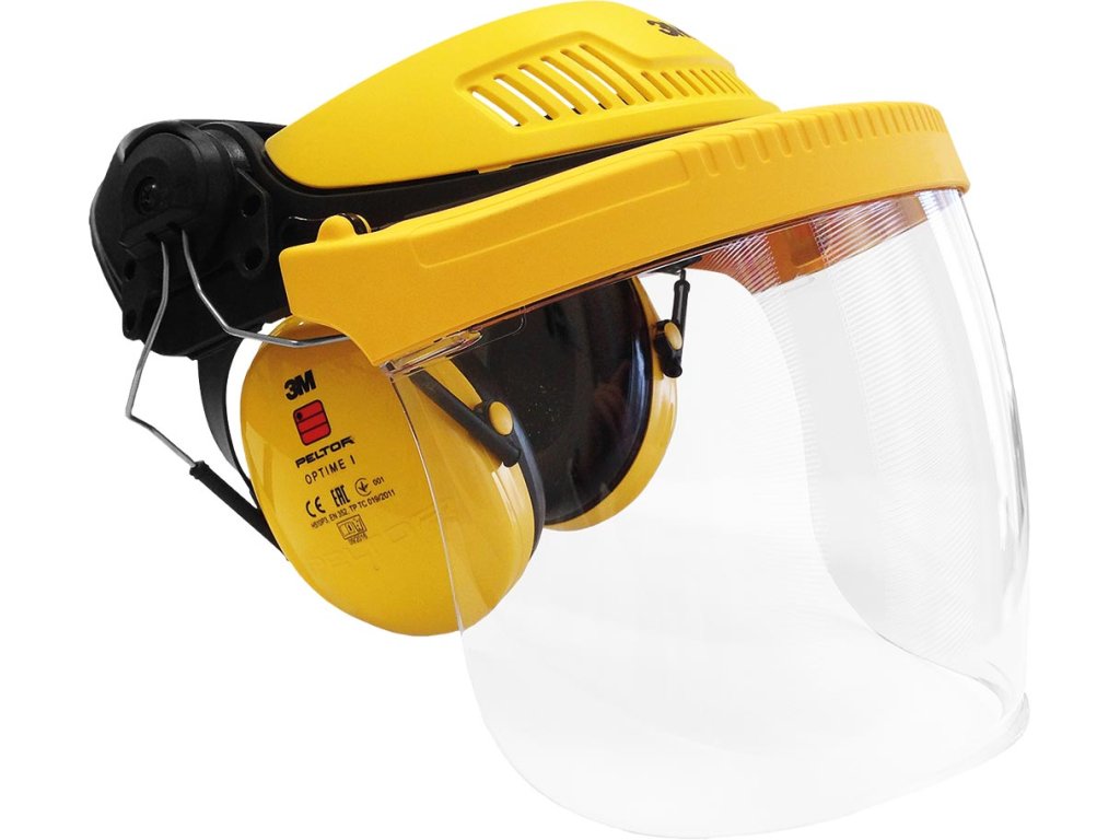 Priemyselná náhlavná súprava G500. - Sada obsahuje: číry štít zo série 5F-11, hlavový postroj G500 a chrániče sluchu Optime 1. - Priezor je vyrobený z priehľadného polykarbonátu. - Vybavený postrojom, ktorý umožňuje 3 nastavenia výšky a 8 nastavení obvodu popruhu. - Kompatibilné s okuliarmi série V6. - Ochranný štít poskytuje dobrú ventiláciu a zvyšuje pohodlie pri práci. - Chrániče sluchu spĺňajú požiadavky normy EN352-3.Dodatočné parametre