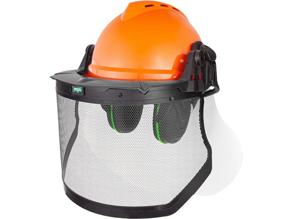 Lesnícka súprava. - Pozostáva z bezpečnostnej prilby V-Gard 500, štítu na tvár, ochrany sluchu, ochrany krku a držiaka štítu na tvár - Odvetrávaná prilba V-Gard 500 vyrobená z ABS plastu s potnou páskou - 4-bodový V-Gard postroj s gombíkom na nastavenie výšky a dĺžky - Oceľový oceľový štít na tvár V-Gard, rozmery: 203 x 432 mm, chráni pred malými pevnými časticami s energiou nárazu do 45 m/s (F) - Tvárový štít má voštinovú štruktúru pre lepšiu viditeľnosť a priemer oka je približne 2,3 mm - Ochrana sluchu V-Gard má zvukový útlm H=34 dB, M=25 dB, L=17 dB, SNR=28 dB - 31 cm dlhý chránič krku vyrobený z PVC, chráni užívateľa pred slnkomDodatočné parametre