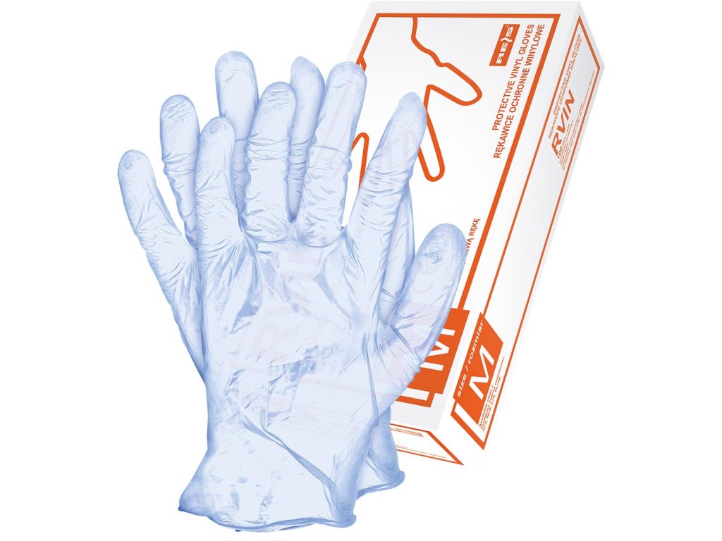 Rukavice vyrobené z vinylu.- Z vnútornej strany jemne poprášené prírodným kukuričným škrobom, čo uľahčuje nasadenie a vyzliekanie.