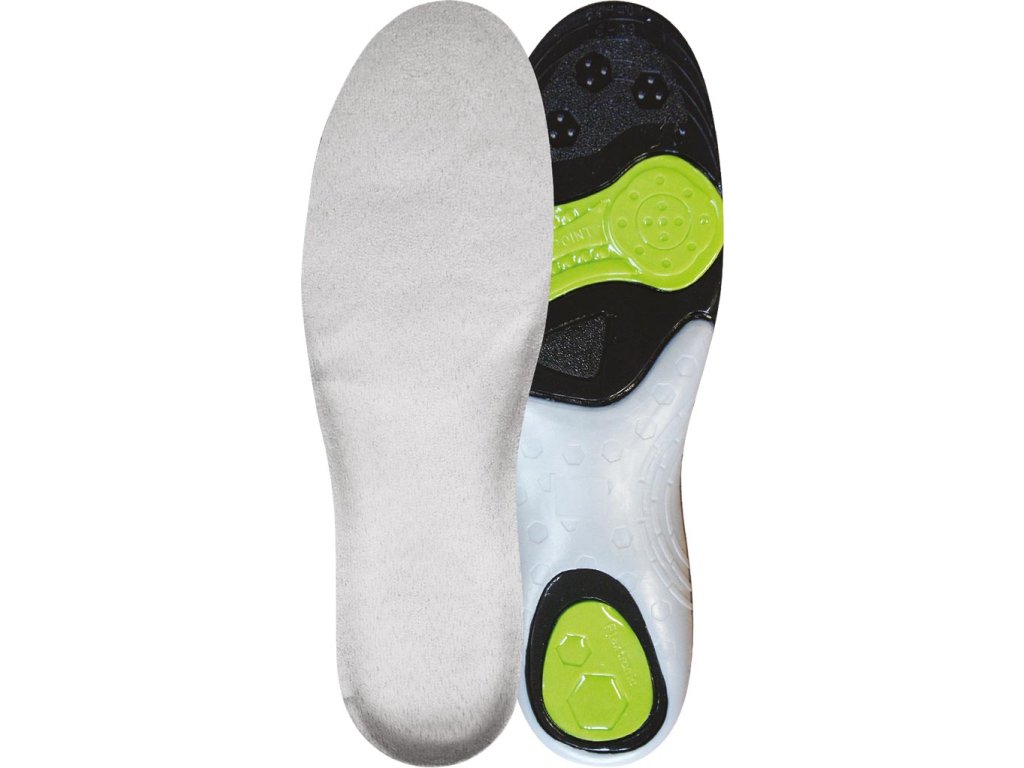 - Spodná vrstva je kombináciou troch gélov rôznych hustôt, ktoré zmierňujú tlak na anatomické podporné body chodidla (päta a hlavička prvej a piatej metatarzálnej kosti).