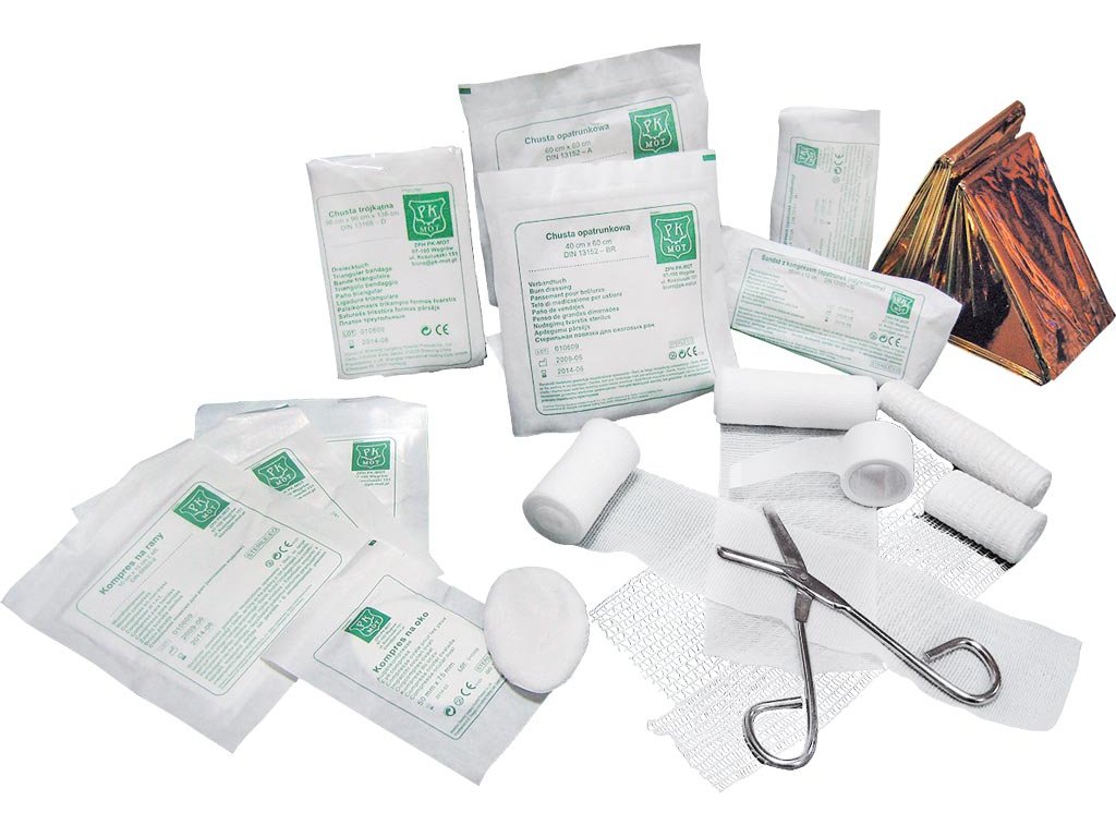 Základné vybavenie lekárničky. - Príslušenstvo pre lekárničku: AS20, AS30, AS40, AZP10, AZP110, AZP15, AZP20, ASA, ASAC, ASAm, AZ, AZR, AS-MINIMIN - na základe DIN 13164:2022 - 14-dielna omietková súprava s obväzom: 6x10 cm (4 ks), 4,3x7,2 cm (2 ks), 12x2 cm (2 ks), 1,9x7,2 cm (2 ks), 2,5x7,2 cm (4 ks) - sadrový kotúč 5 m x 2,5 cm (1 ks) - elastický obväz 4 m x 6 cm (2 ks) - elastický obväz 4 m x 8 cm (3 ks) - vinylové rukavice (2 páry) - namočené obrúsky (2 ks) - šatka 60x40 cm (1 ks) - šatka 60x80 cm (1 ks) - obväz s obkladom (individuálny obväz) 6x8 cm (1 ks) - obväz s obkladom (individuálny obväz) 8x10 cm (2 ks) - obväz s obkladom (individuálny obväz) 10x12 cm (1 ks) - obklad na rany 10x10 cm (6 ks) - rozmery trojuholníkového obväzu: 96x96x136 cm (1 ks) - pletený obväz 4 m x 5 cm (3 ks) - pletený obväz 4 m x 10 cm (2 ks) - pletený obväz 4 m x 15 cm (1 ks) - termo deka 160x210 cm (1 ks) - nožnice (1 ks) - lekárska maska (2 ks) - Kompresia na oči 5x7,5 cm (1 ks) - Pokyny pre prvú pomoc - Prístroj na umelé dýchanieDodatočné parametre