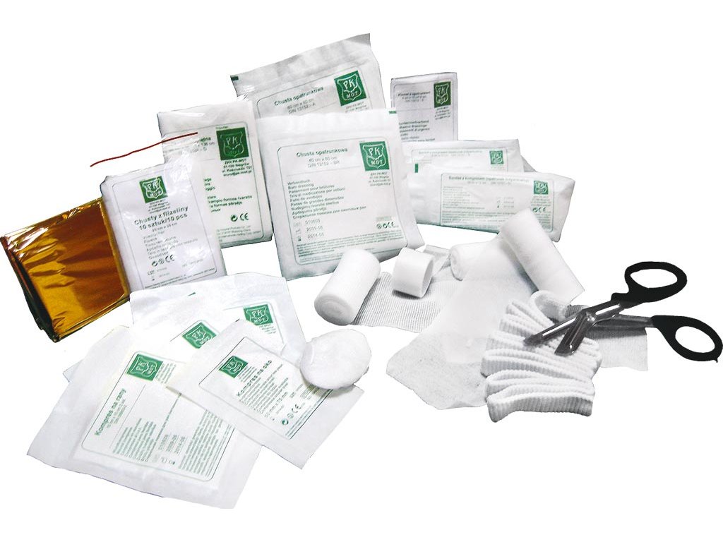 Vybavenie súpravy prvej pomoci. - Vybavenie lekárničky: AS30, AS40, AZP15, AZP20 - v súlade s DIN 13157:2009 - omietky 6x10 cm (8 ks) - omietky 5 m x 2,5 cm v rolke (1 ks) - 4-dielna sada na omietku - obväz 6x8 cm s obkladom (1 ks) - elastický obväz 4 m x 6 cm (2 ks) - elastický obväz 4 m x 8 cm (2 ks) - 2 páry vinylových rukavíc - obväz 60x80 cm (1 ks) - netkaný obväz 20x30 cm (5 ks) - 8x10 cm obväz s obkladom (individuálny obväz) (3 ks) - 8x10 cm obväz s obkladom (individuálny obväz) 10x12 cm (1 ks) - Obklad na ranu 10x10 cm (6 ks.) - Kompresia na oči 5x7,5 cm (2 ks) - studený obklad (1 ks) - Rozmery trojuholníkového obväzu: 96x96x136 cm (2 ks) - termo deka 160x210 cm (1 ks) - Nožnice 19,5 cm (1 ks) - plastové vrecko (2 ks) - Respirátor - Pokyny pre núdzovú prvú pomoc a zoznam vybaveniaDodatočné parametre