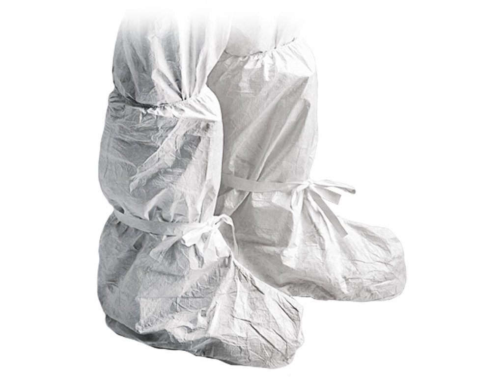 Vysoké návleky na topánky vyrobené z materiálu Tyvek. - Rozmery: Výška - 48 cm, Dĺžka - 35 cm - Elastický top s dodatočnými šnúrkami v strede - Balené po 20 kusov v kufríkuDodatočné parametre