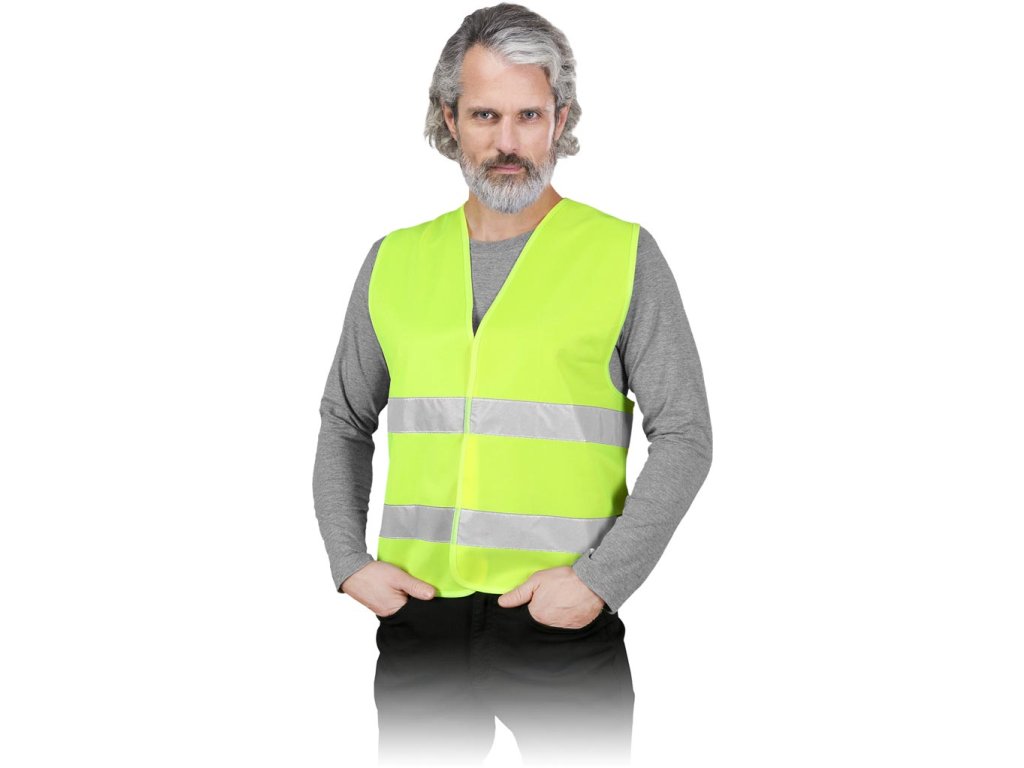 Vesta s vysokou viditeľnosťou. - 100% polyesterová tkanina - hmotnosť 120 g/m² - Zapínanie na suchý zips - Dva horizontálne reflexné pruhy pre zvýšenú viditeľnosť - Ideálne pre cestné posádkyDodatočné parametre