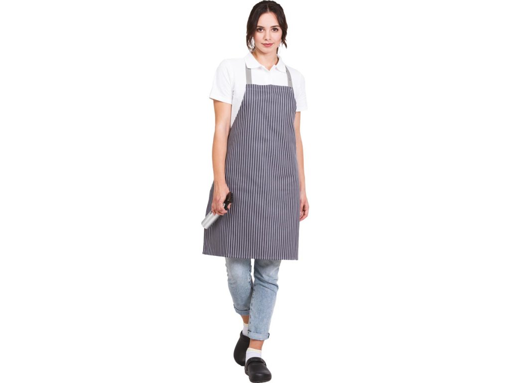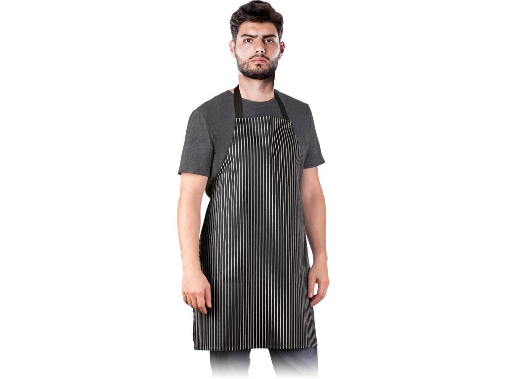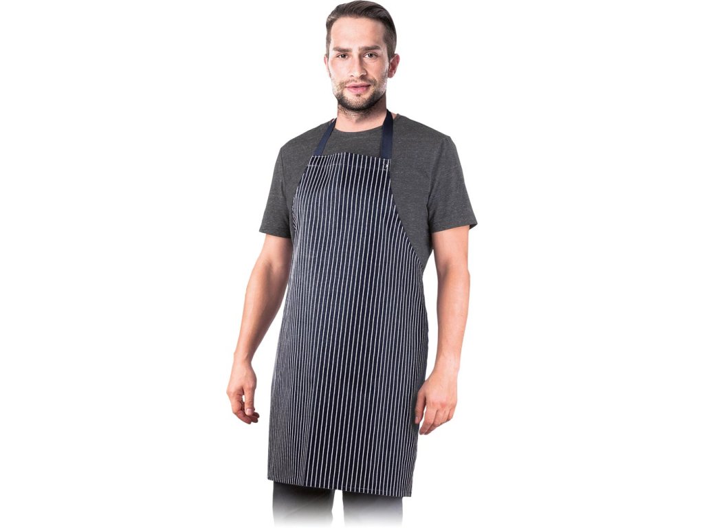 Predná zástera. - Materiál: 65% polyester, 35% bavlna - Gramáž: 190 g/m² - Zaväzovanie vzadu s popruhmi pre lepšie uchytenie - Zapína sa na patentky pri krku pre nastaviteľnú dĺžku - Možno prať (bez potlače) do 60°C - Ideálne pre prácu v potravinárskom priemysleDodatočné parametre