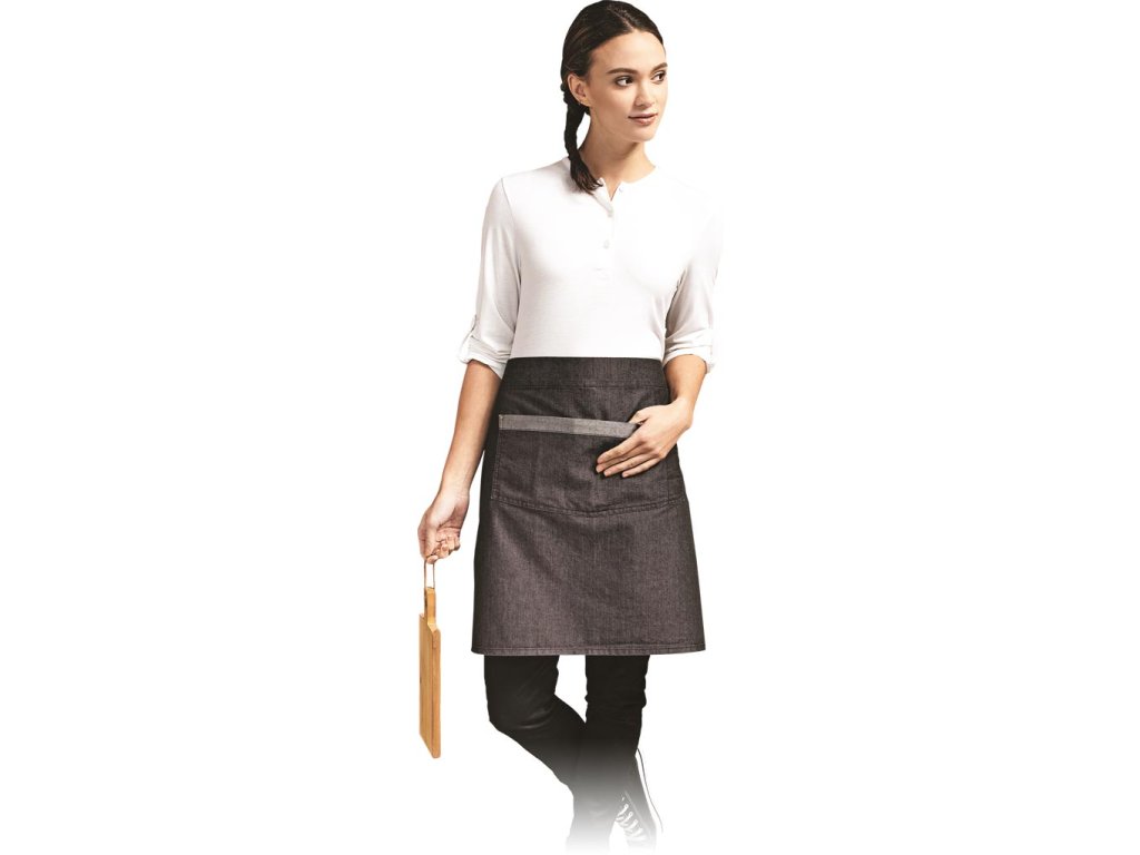 Zástera v štýle zástera. - 70% polyester / 30% bavlna - hmotnosť 265 g/m² - 36 cm široké stredné vrecko s kontrastným lemovaním a priehradkou na pero - Kovové očká zaisťujú kontrastné látkové popruhy dlhé 100 cm - Dĺžka 50 cm, šírka 70 cm - Možno prať do 95°CDodatočné parametre