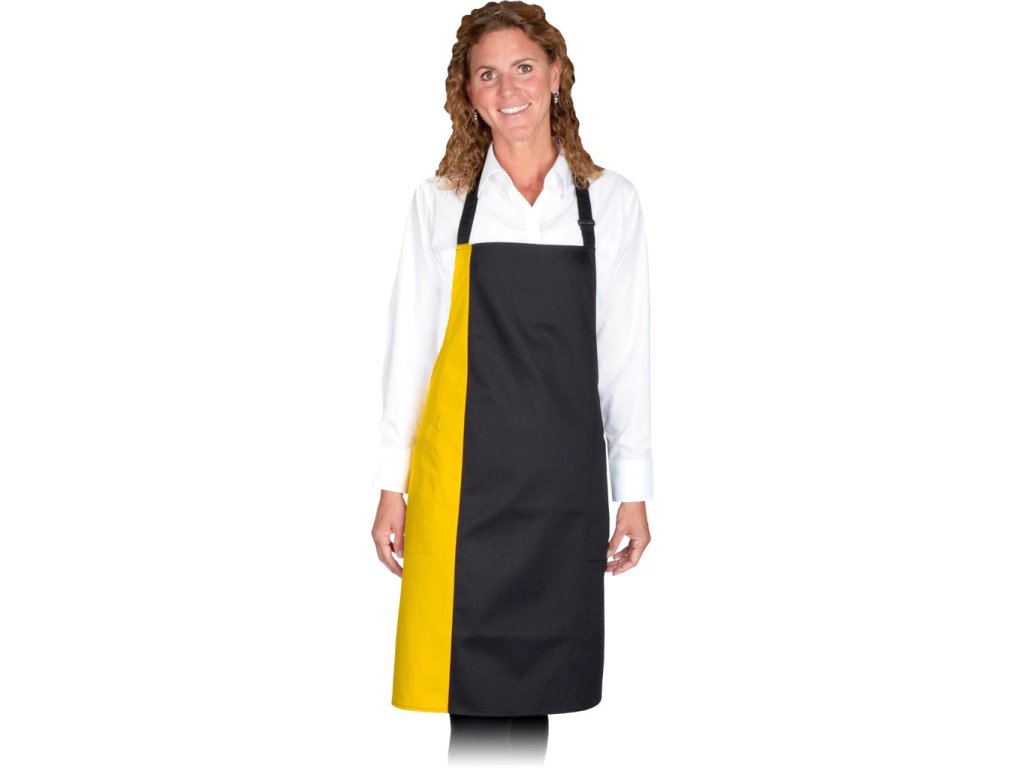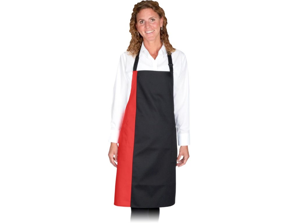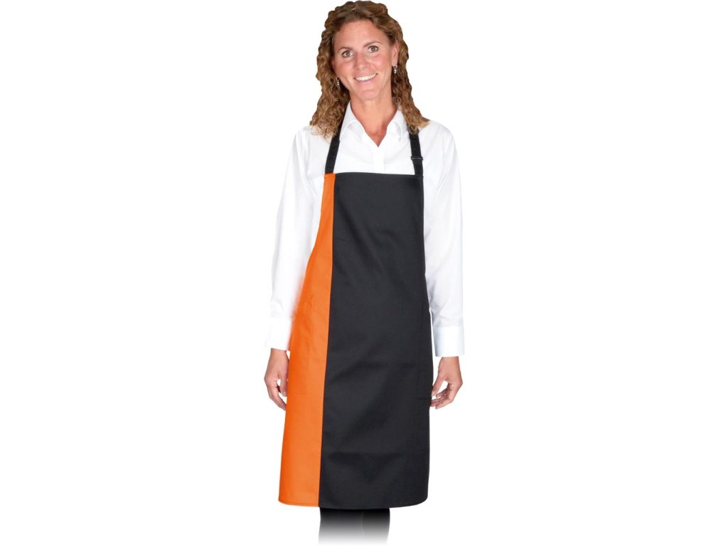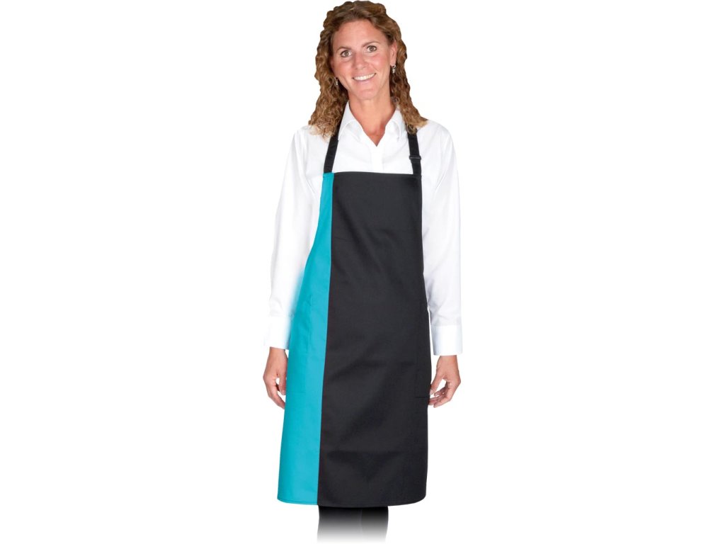 Zástera na krk. - Materiál: 80% polyester, 20% bavlna - Gramáž: 200 g/m² - Ľahko čistiteľný materiál - Vopred zmrštené - Nastaviteľný popruh na krk - Dve predné vrecká s diagonálnym otváraním - Módny strih a farebná kombináciaDodatočné parametre