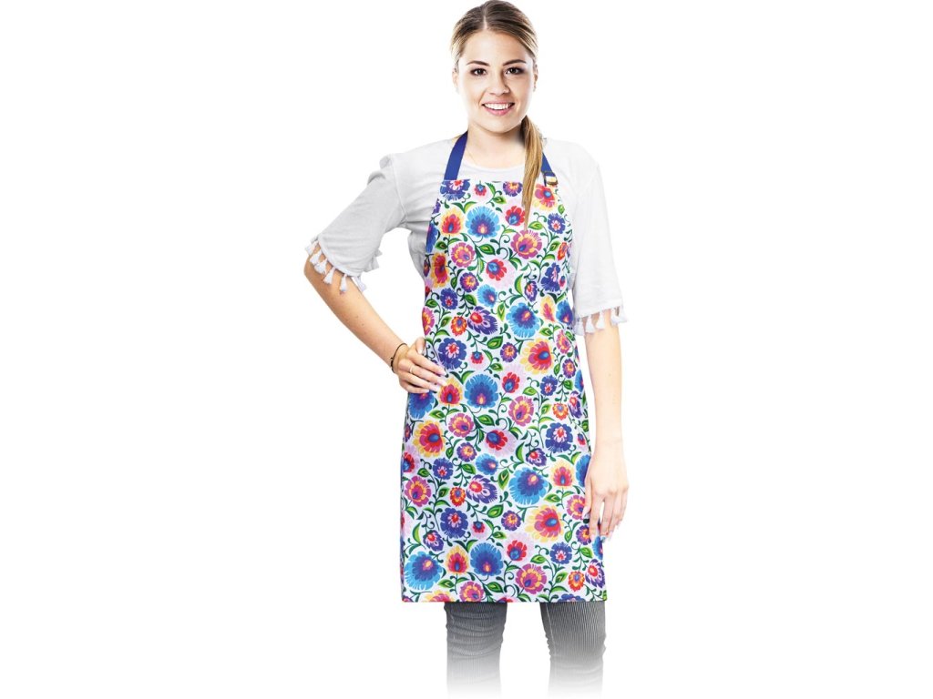 Predná zástera, zaväzovanie pri krku.- 100% bavlna