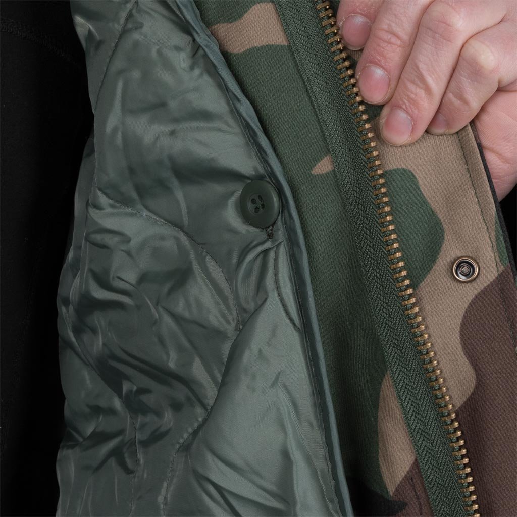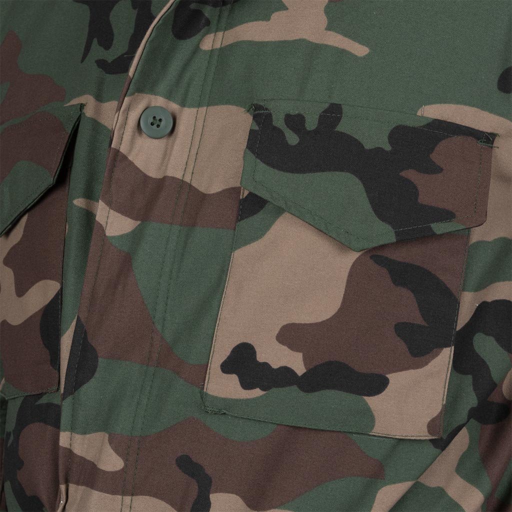 Zateplená maskáčov bunda Tactical Guard 2v1 REIS. - materiál: 65% polyester, 35% bavlna, 210-220 g/m2 - podšívka: 65% polyester, 35% bavlna, 180 g/m2 - prešívaná, odnímateľná podšívka na gombíky, 100% polyester, 55-60 g/m2, s podšívkou: 100% polyester, 120 g/m2 - zapínanie na zips s dodatočným zapínaním na patentný cvok - kapucňa skrytá v golieri, stiahnutá šnúrkami - dve vrecká v spodnej časti a dve na hrudi, zapínané na patentné cvočky - predĺžené rukávy so zapínaním na suchý zips - vnútorné sťahovanie na prispôsobenie bundy telu a ochrana pred vetrom - spodná časť bundy stiahnutá šnúrkami - ďalšie ramenné náramky - určená pre vojenských nadšencov, cestovateľov, fanúšikov paintballu - ideálna pre lesníkov a rybárov