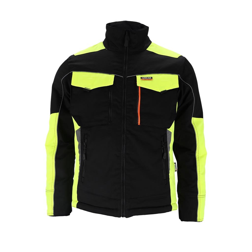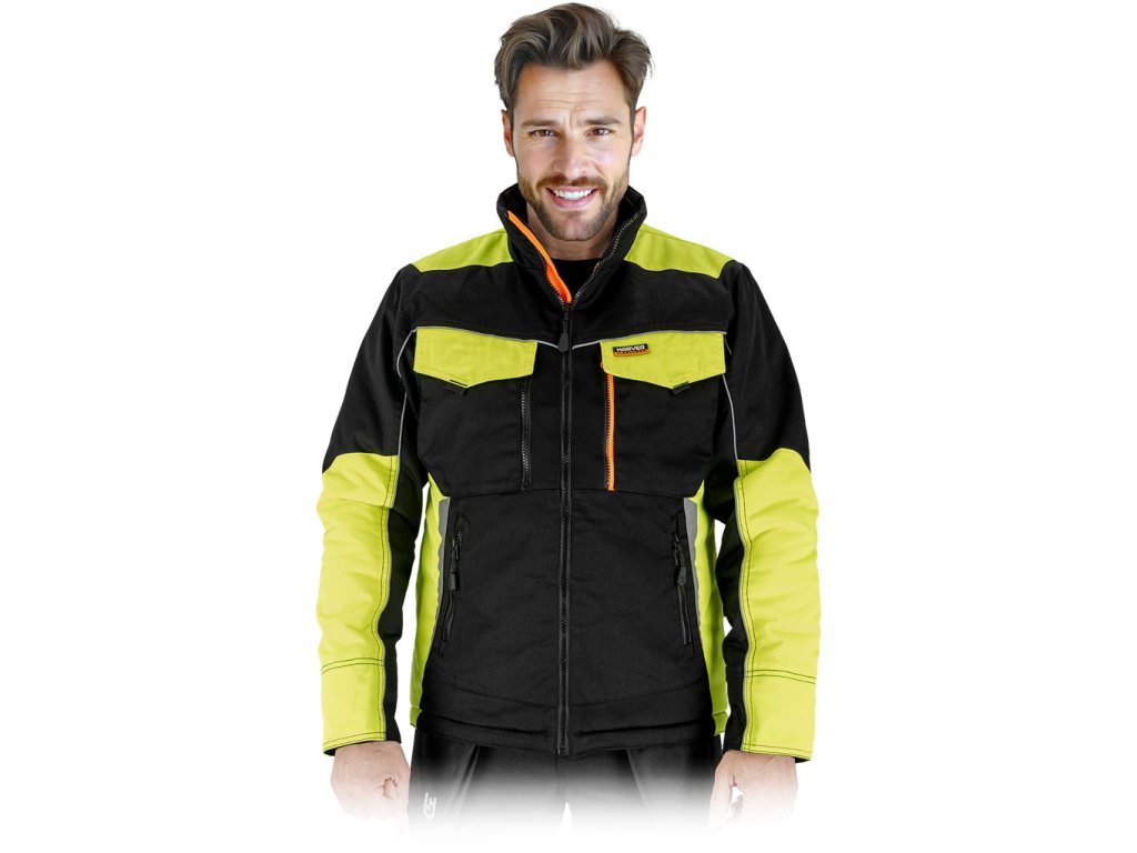 Zateplená pracovná bunda L.HOLLMAN. - hlavný materiál: látka 80% polyester, 20% bavlna, 240 g/m2 - kontrastné vložky: látka 80% polyester, 20% bavlna, 240 g/m2 - podšívka 100% polyester, 150 g/m2 - prešívaná flísová podšívka 100% polyester, 150 g/m2 (telo) a 100% polyester taft 190T, 60 g/m2 (rukávy) - zapínanie na zips - stojačik zateplený flísom - dve spodné vrecká na zips a dve dvojité vrecká na hrudi - dve vnútorné vrecká, jedno na zips a druhé na suchý zips - rukávy zakončené gumou zvnútra - spodný lem nastaviteľný pomocou cvokov - reflexné prvky - strih: REGULAR