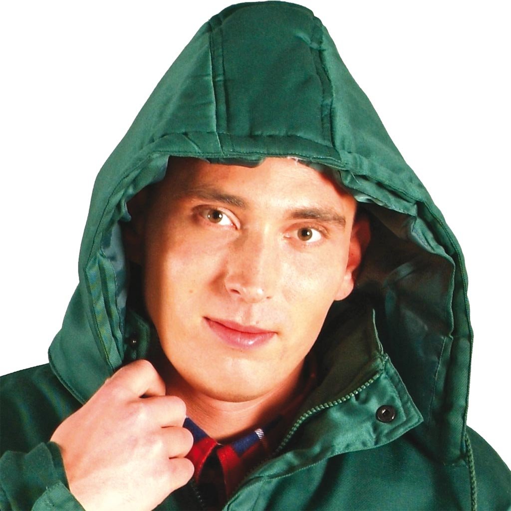 Zateplená pracovná bunda REIS. - Materiál: 65 % polyester, 35 % bavlna, 180 g/m² - Výplň: 100 % polyester, 180 g/m² - Prešívaná podšívka: 100 % polyester taft 190T, 50 g/m² - Zapínanie na zips s dodatočným patentným gombíkom - Stojatý golier - Odnímateľná kapucňa so sťahovacími šnúrkami - Dve dvojité spodné vrecká a tri náprsné vrecká so zapínaním na suchý zips - Rukávy so zapínaním na suchý zips