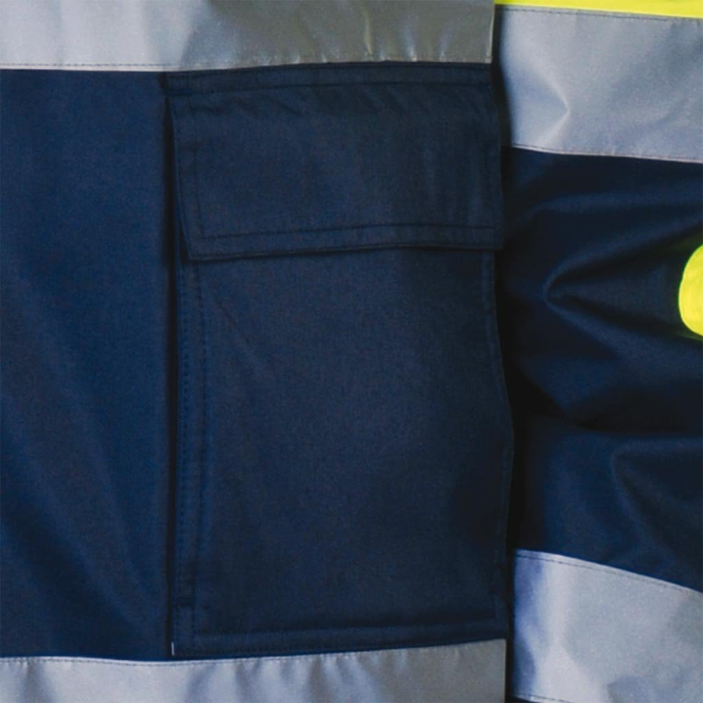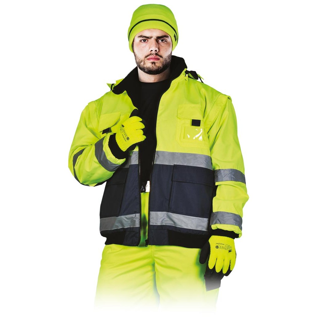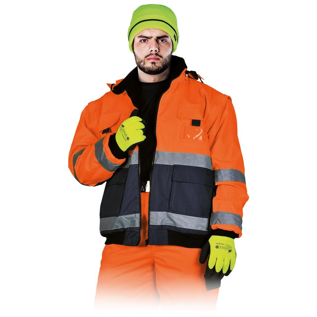 Zateplená reflexná bunda 2v1 L.HOLLMAN. - Materiál: 100 % 300D Oxford polyester s polyuretánovým záterom, 180 g/m² - Flísová podšívka: 100 % polyester, 280 g/m² - Zapínanie na zips - Stojatý golier s flísovou podšívkou - Odnímateľná kapucňa so sťahovacími šnúrkami, ktoré sa dajú zrolovať do goliera a zapnúť suchým zipsom - Dve dvojité vrecká v spodnej časti, dve na hrudi a ďalšie vrecko na preukaz totožnosti - Tri vnútorné vrecká, z ktorých jedno je so zapínaním na suchý zips - Odnímateľné rukávy so zipsami a elastickými manžetami - Elastický spodný lem - Fluorescenčná tkanina a reflexné pruhy pre zvýšenú viditeľnosť - Ideálne pre cestných príslušníkov a iných príslušníkov orgánov.