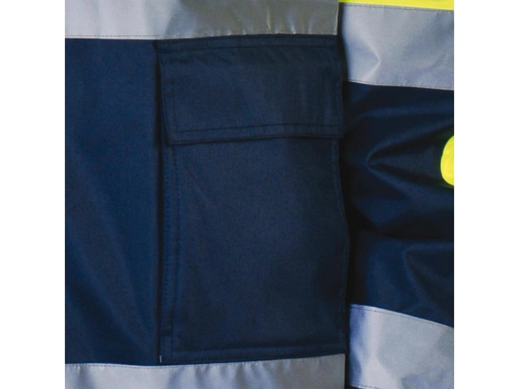 Zateplená reflexná bunda 2v1 L.HOLLMAN. - Materiál: 100 % 300D Oxford polyester s polyuretánovým záterom, 180 g/m² - Flísová podšívka: 100 % polyester, 280 g/m² - Zapínanie na zips - Stojatý golier s flísovou podšívkou - Odnímateľná kapucňa so sťahovacími šnúrkami, ktoré sa dajú zrolovať do goliera a zapnúť suchým zipsom - Dve dvojité vrecká v spodnej časti, dve na hrudi a ďalšie vrecko na preukaz totožnosti - Tri vnútorné vrecká, z ktorých jedno je so zapínaním na suchý zips - Odnímateľné rukávy so zipsami a elastickými manžetami - Elastický spodný lem - Fluorescenčná tkanina a reflexné pruhy pre zvýšenú viditeľnosť - Ideálne pre cestných príslušníkov a iných príslušníkov orgánov činných v trestnom konaní.