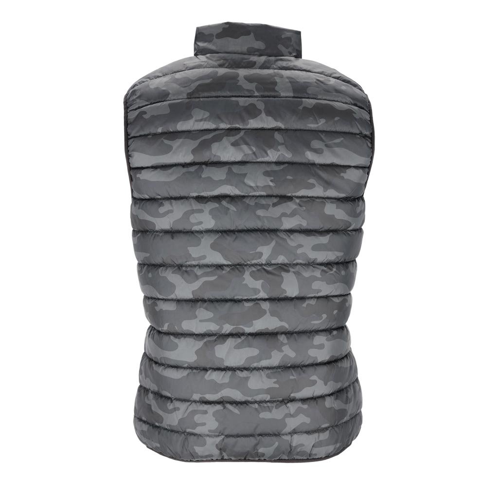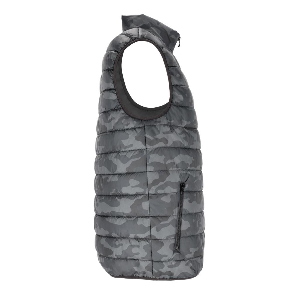 Prešívana pánska zateplená vesta maskáčová REIS. - Materiál: 100 % polyester, 65 g/m² - Výplň: 100 % polyester, 180 g/m² - Podšívka: 100 % polyester taft 210T, 55 g/m² - Zapínanie na zips - Stojáček - Dve spodné vrecká na zips - Elastický lem na ramenách a leme - Strih: REGULAR