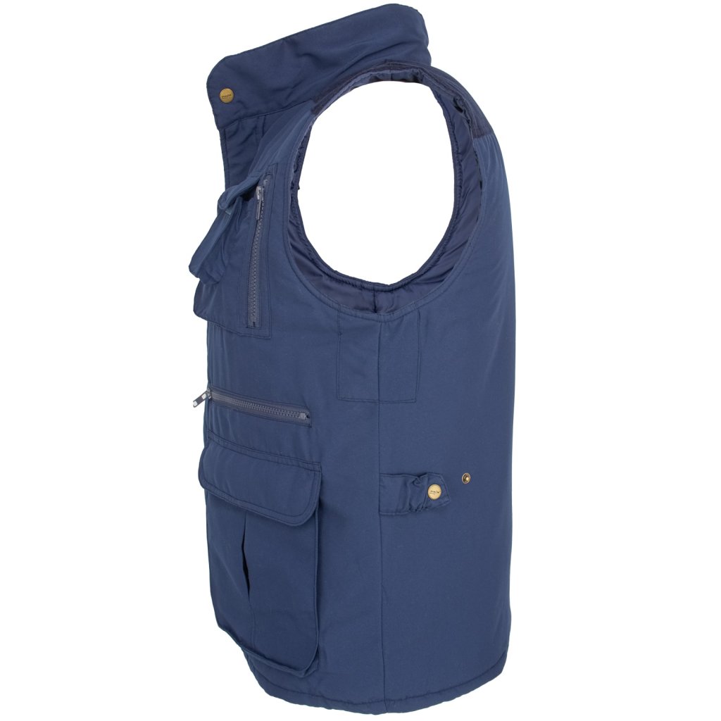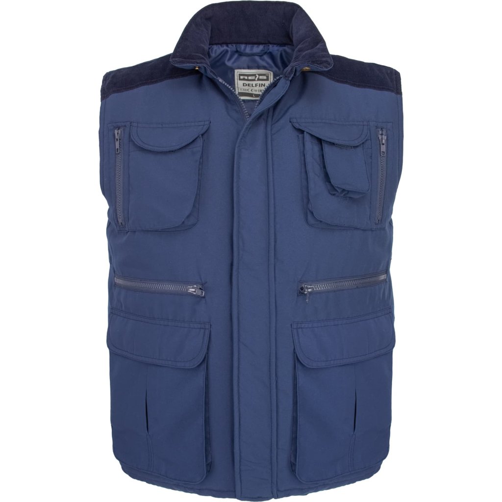 Zateplená vesta s viacerými vreckami a manšestrovými ramennými výplňami. - Vrchný materiál: 100 % polyester, 170 g/m² - Výplň: 100 % polyester, 160 g/m² - Podšívka: 100 % polyester, 53 g/m² - Zapínanie na zips s dodatočným zapínaním na suchý zips - Osemvreckový dizajn vrátane štyroch vreciek na zips a štyroch vreciek na suchý zips - Ďalšie manšestrové ramenné výplňy dodávajú tejto veste štýlový vzhľad, vďaka čomu je ideálna na každodenné nosenie - Vďaka početným vreckám je obľúbená aj u rybárov a chytačov ryb.