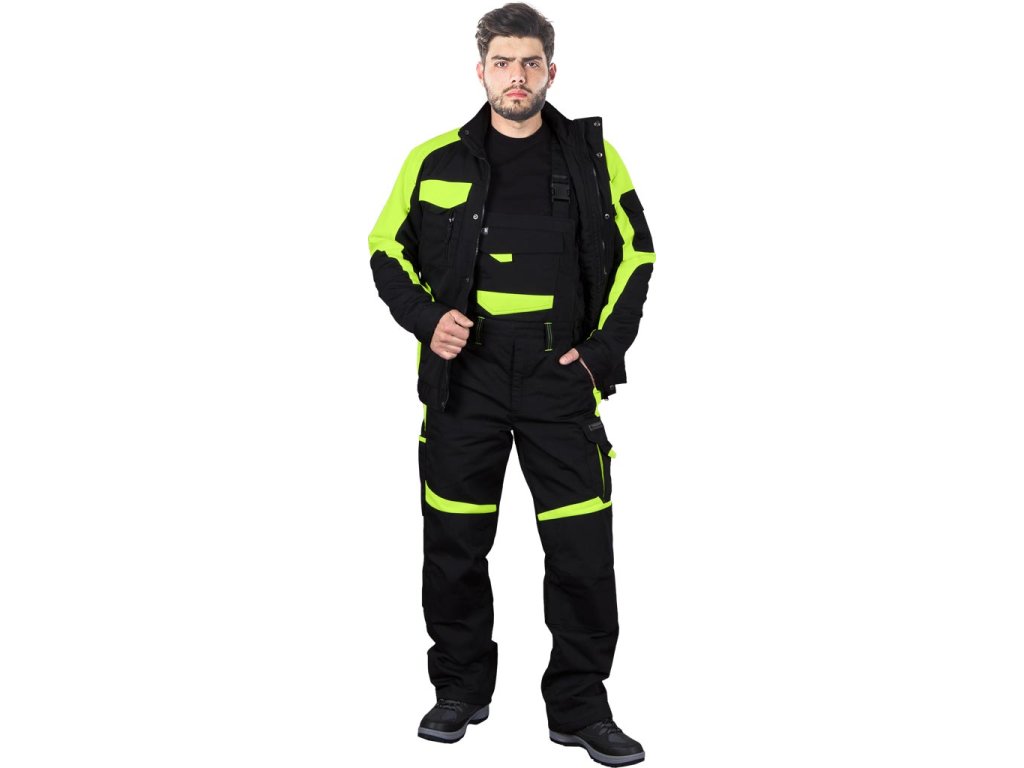 Pánske zateplené montérky na traky TANZO značky L.HOLLMAN. - vrchný materiál 65% polyester, 35% bavlna, 270 g/m2 - podšívka 100% polyester, 60 g/m2 - výplň 100% polyester, 150 g/m2 - výplne z kontrastného materiálu 65% polyester, 35% bavlna, 195 g/m2 - jedno náprsné vrecko so zapínaním na suchý zips - tri bočné vrecká, z toho jedno so zipsom - dve zadné vrecká so zapínaním na suchý zips - vrecká na nohaviciach vrátane vrecka na mobilný telefón - elastický pás na nastavenie šírky, vďaka ktorému nohavice lepšie sedia - nastaviteľná dĺžka s trakmi - bod na upevnenie na kľúče - pútka na pripevnenie ďalšieho príslušenstva - vrecká na chrániče kolien na kolenách - módna farebná kombinácia dodáva atraktívny vzhľad