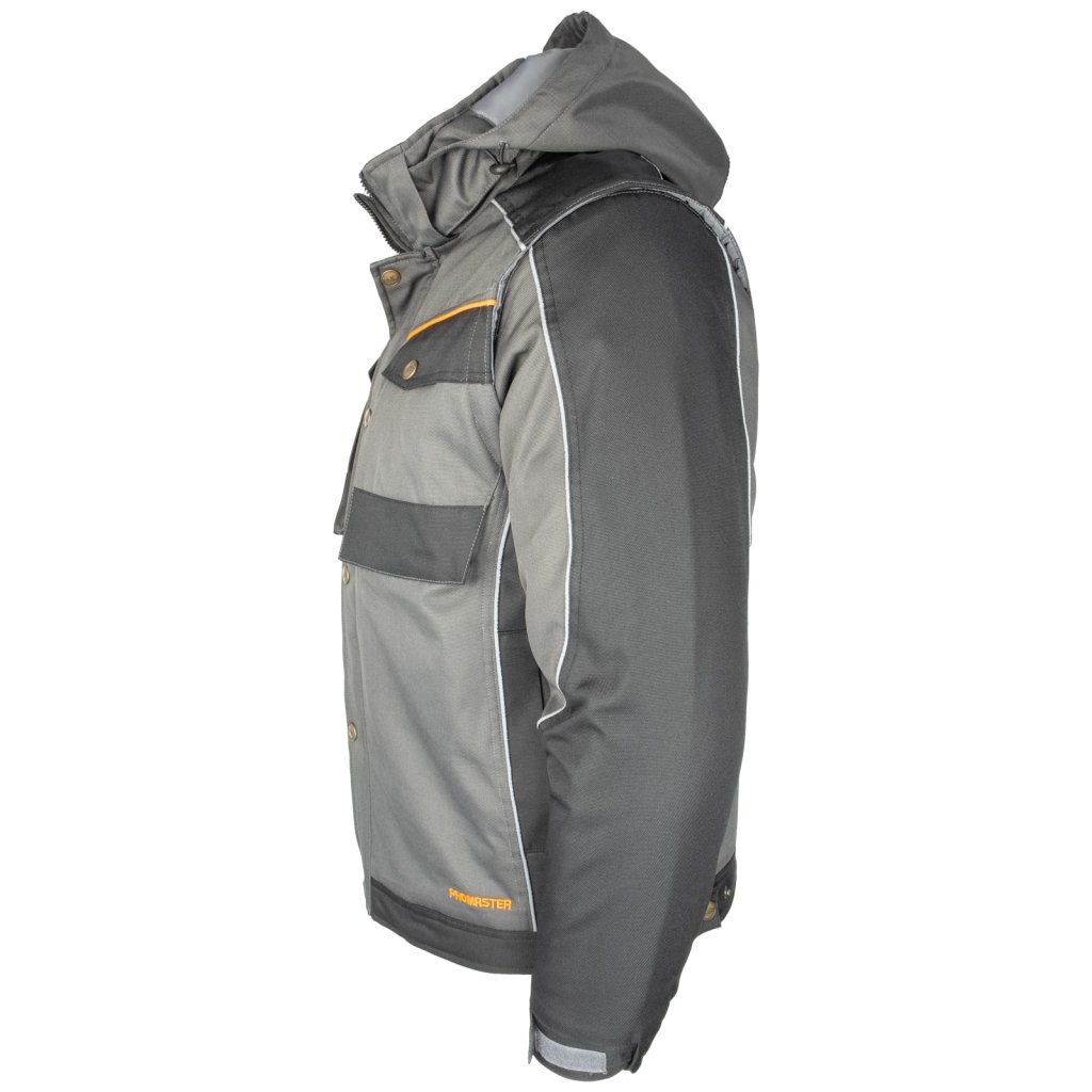 Zimná bunda s odnimateľnou kapucňou 3v1 PRO WIN REIS. - Materiál: 100 % polyester Oxford, 210 g/m², s polyuretánovým záterom - Výplň: 100 % polyester, 280 g/m² - Podšívka: 100 % polyester taft 210T, 60 g/m² - Zapínanie na zips s dodatočným zapínaním na patentný cvok - Stojatý golier - Odnímateľná kapucňa so sťahovacími šnúrkami a dodatočným zapínaním na suchý zips pre lepšiu ochranu hlavy - Dve spodné vrecká a dve náprsné vrecká - Dve vnútorné vrecká, jedno na zips a druhé na suchý zips - Klip na kľúče - Rukávy na zips s elastickými manžetami a dodatočným zapínaním na suchý zips - Nastaviteľný spodný lem so zapínaním na patentný cvok - Reflexné prvky pre zvýšenú viditeľnosť