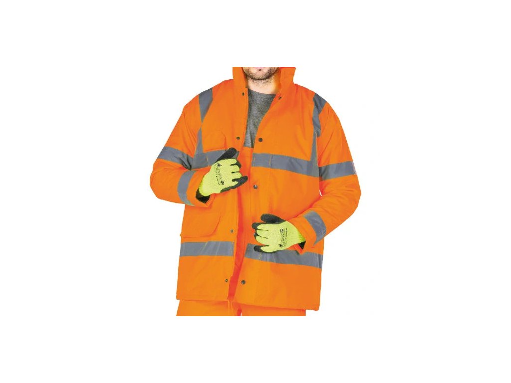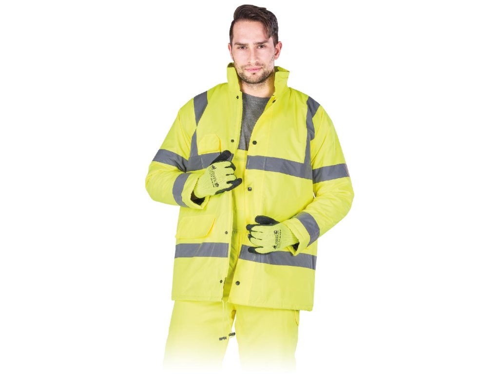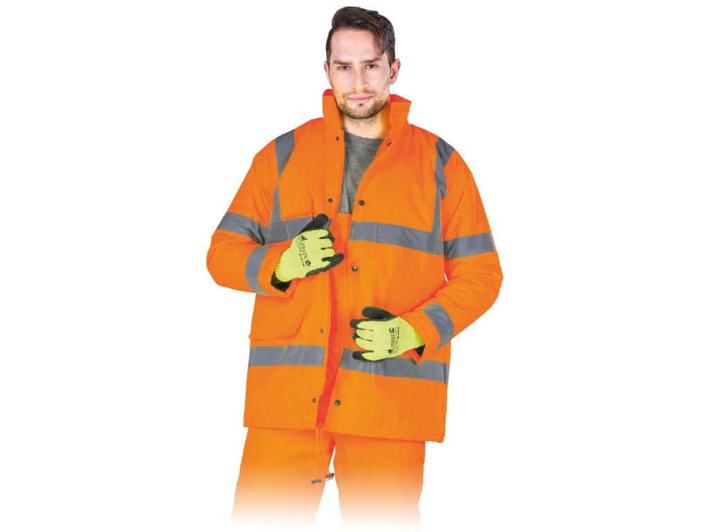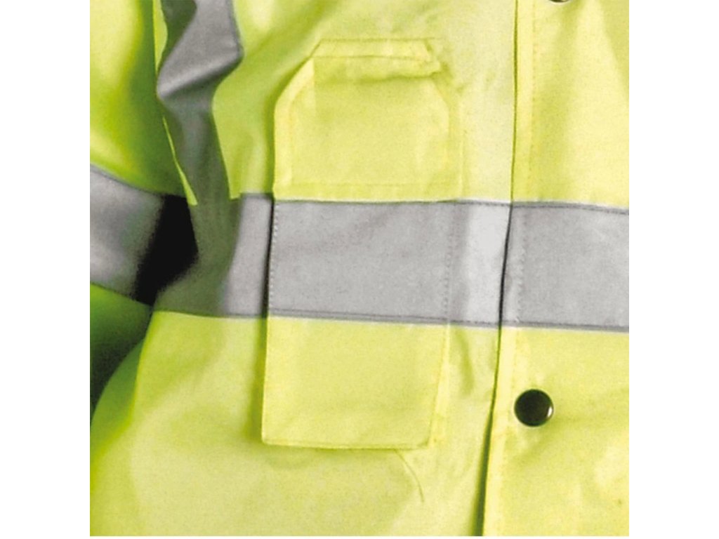 Zimná bunda s vysokou viditeľnosťou, ideálna pre cestných robotníkov. - Vrchná vrstva zo 100 % polyesteru Oxford s polyuretánovým záterom - Výplň zo 100 % polyesteru, 160 g/m² - Podšívka z taftu zo 100 % polyesteru 190T - Zapínanie na zips s dodatočným patentným gombíkom, kapucňa skrytá v golieri - Tri vonkajšie vrecká, vrátane jedného na mobilný telefón so zapínaním na suchý zips - Ďalšie vnútorné vrecko na suchý zips - Elastický spodný lem - Prešívané vnútro zabraňuje posunutiu izolácie - Spĺňa požiadavky normy EN ISO 20471 (trieda 3)Dodatočné parametre
