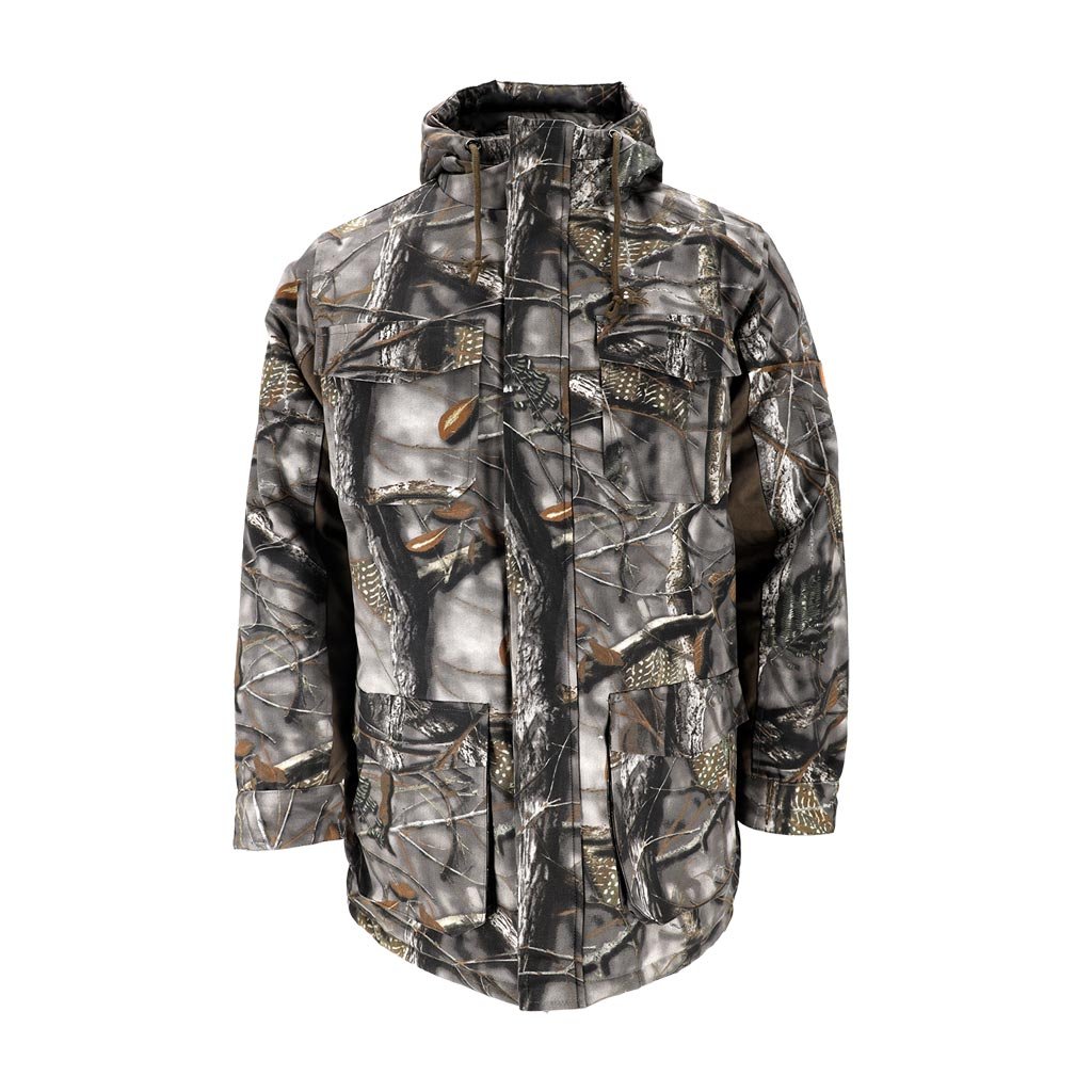 Pánska zimná poľovnícka bunda REIS.- Materiál: 100% bavlna, 260 g/m² - Výplň: 100% polyester, 220 g/m² - Prešívaná podšívka: 100% polyester 190T taft, 50 g/m² - Zapínanie na zips s dodatočným zapínaním na patentný patent - Kapucňa so sťahovacími šnúrkami - Dve dvojité vrecká v spodnej časti a dve na hrudi, zapínané na patentné patentky - Vnútorné vrecko so zapínaním na suchý zips - Vnútorné sťahovacie šnúrky na stiahnutie bundy v páse, čo umožňuje prispôsobený strih a ochranu pred vetrom - Rukávy so zapínaním na patentné patentky - Systém vetrania v podpazuší umožňuje cirkuláciu vzduchu a zvýšené pohodlie - Ideálne pre lesníkov a rybárov - Ideálne na prežitie - Strih: REGULAR