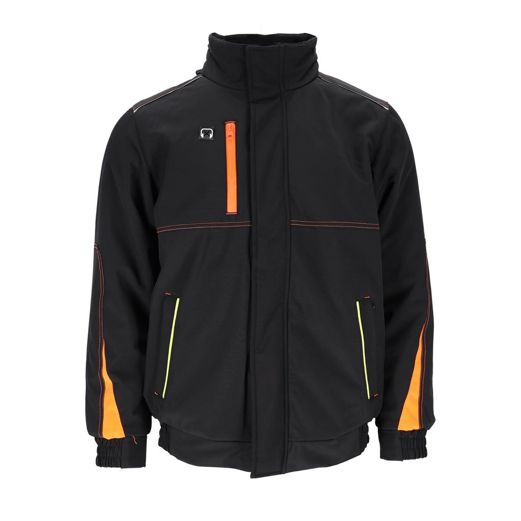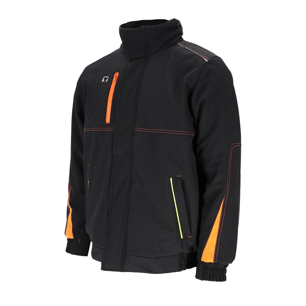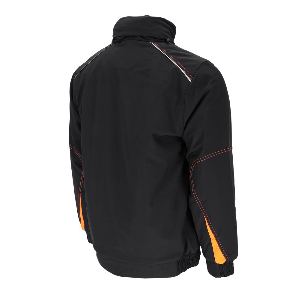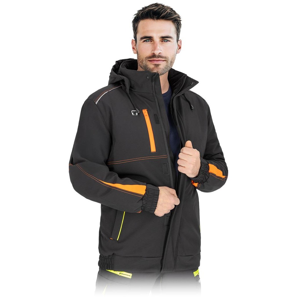 Pánska zimná zateplená pracovná bunda. - Trojvrstvový softshellová tkanina: 94 % polyester, 6 % elastan, TPU membrána, 100 % polyesterový fleece, 310 g/m² - výplň 100 % polyester 120 g/m² - Prešívaná podšívka: 100 % polyester 190T taft, 50 g/m² - SOFTSHELL materiál - chráni pred dažďom a vetrom a zároveň umožňuje pokožke dýchať - Zapínanie na zips s dodatočným suchým zipsom a patentnými gombíkmi - Stojatý golier - Kapucňa so sťahovacími šnúrkami, ktoré sa dajú zrolovať a uložiť do goliera - Dve spodné vrecká a jedno náprsné vrecko so zipsami - Tri vnútorné vrecká so zapínaním na suchý zips - Otvor na slúchadlá - Rebrované manžety a lem po stranách - Reflexné prvky - Strih: REGULAR