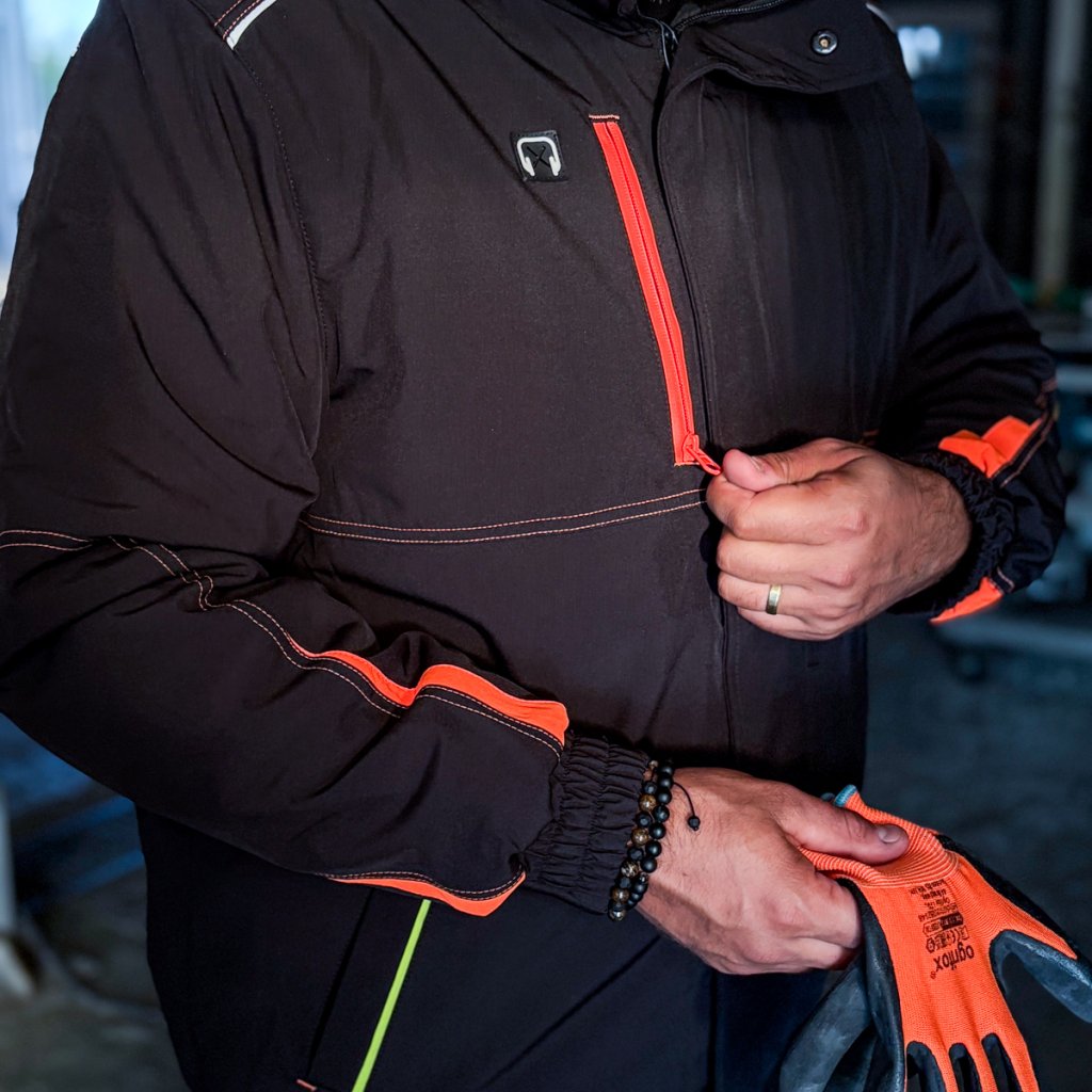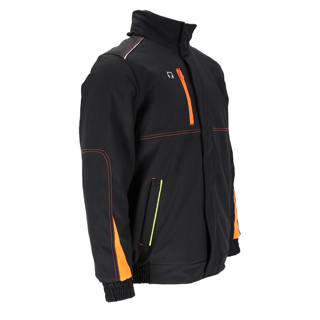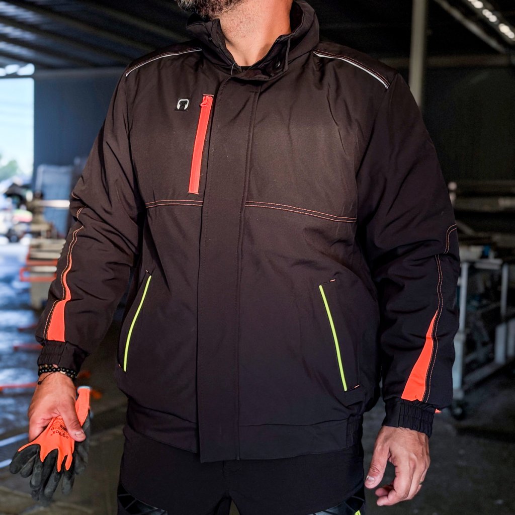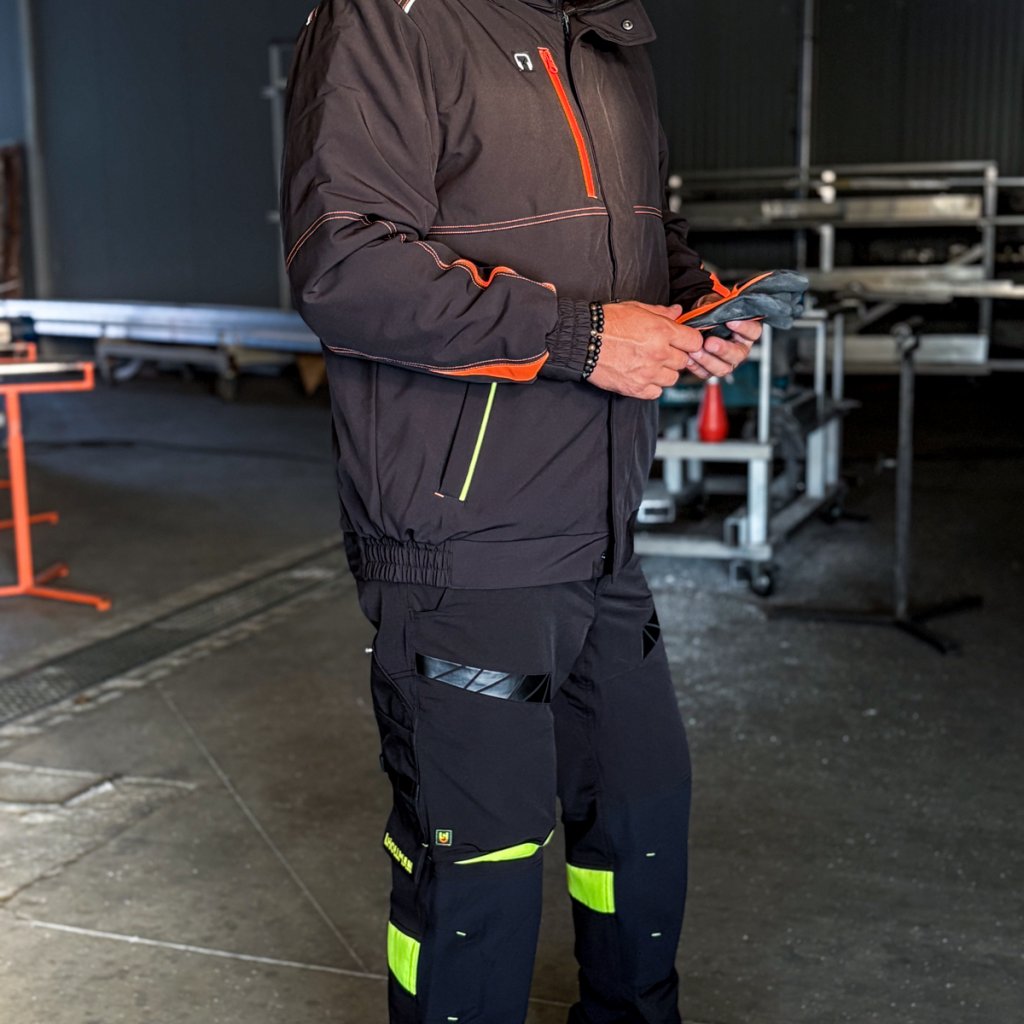 Pánska zimná zateplená pracovná bunda. - Trojvrstvový softshellová tkanina: 94 % polyester, 6 % elastan, TPU membrána, 100 % polyesterový fleece, 310 g/m² - výplň 100 % polyester 120 g/m² - Prešívaná podšívka: 100 % polyester 190T taft, 50 g/m² - SOFTSHELL materiál - chráni pred dažďom a vetrom a zároveň umožňuje pokožke dýchať - Zapínanie na zips s dodatočným suchým zipsom a patentnými gombíkmi - Stojatý golier - Kapucňa so sťahovacími šnúrkami, ktoré sa dajú zrolovať a uložiť do goliera - Dve spodné vrecká a jedno náprsné vrecko so zipsami - Tri vnútorné vrecká so zapínaním na suchý zips - Otvor na slúchadlá - Rebrované manžety a lem po stranách - Reflexné prvky - Strih: REGULAR