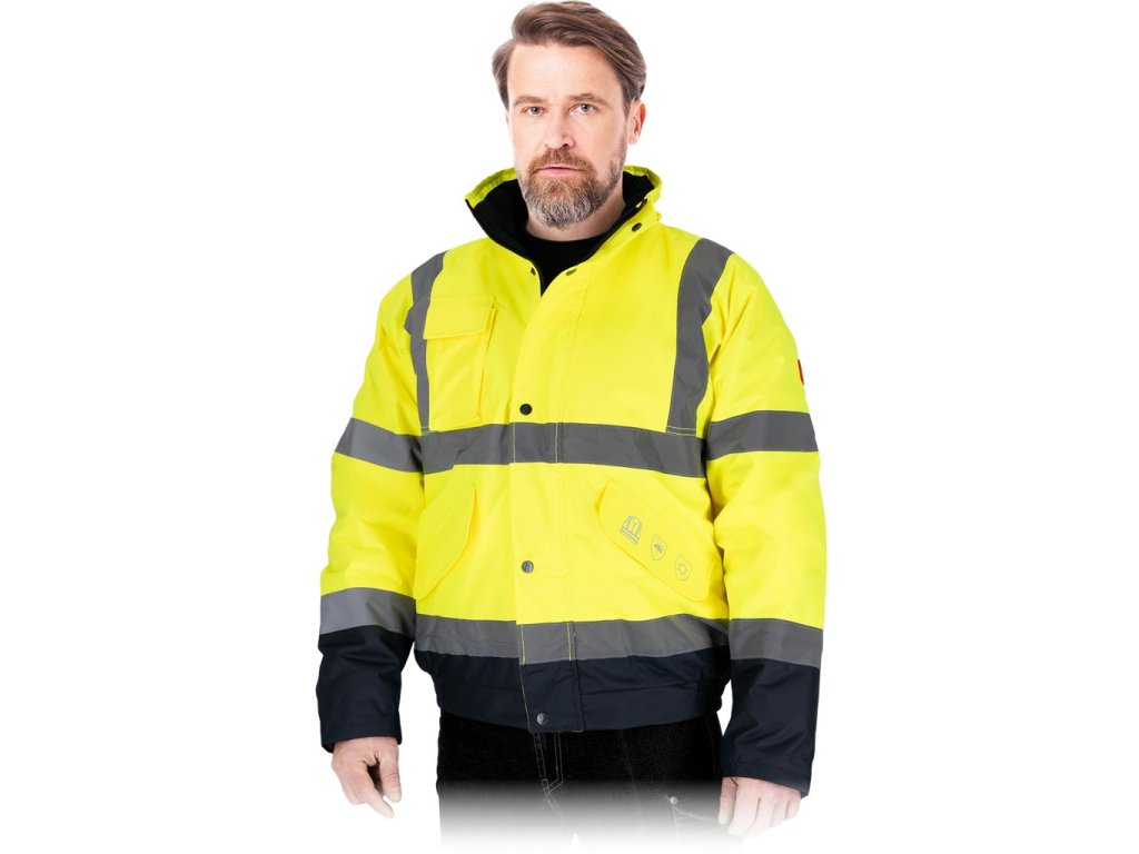 Pánska zimná reflexná pracovná bunda REIS. - Materiál: 100% 300D 190g/m² s polyuretánovým povlakom, 100% polyester Oxford, 160g/m² - Prešívaná podšívka: 100% polyesterový taft, 55g/m² - Zapínanie na zips s dodatočným zapínaním na patentný patent - Stojatý golier s flísovou podšívkou - Kapucňa so sťahovacími šnúrkami, ktoré sa dajú zrolovať do goliera a zapnúť suchým zipsom - Dve spodné vrecká a vrecko na mobilný telefón na hrudi - Skryté vrecko na zips pod klopou - Vnútorné vrecko so zapínaním na suchý zips - Manžety na vnútornej strane rukávov - Manžety po stranách bundy - Fluorescenčná tkanina a reflexné pruhy pre zvýšenú viditeľnosť - Ideálne pre cestných príslušníkov a iných príslušníkov orgánov činných v trestnom konaní - Strih: REGULAR
