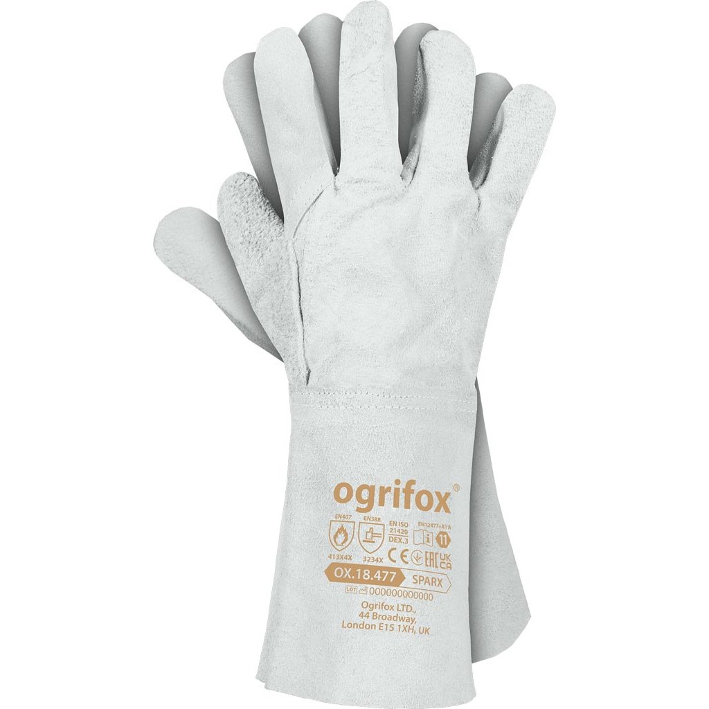 Zváračské rukavice. - Štiepaná hovädzia koža - Dĺžka rukavice: 35 cm - Celá dlaň - Úchopová časť rukavice je vyrobená z jedného kusu kože, čo poskytuje väčšiu odolnosť a odolnosť proti oderu - Celokožená konštrukcia vrátane manžety zo štiepanej kože siahajúcej až do polovice predlaktia, ktorá zabraňuje premočeniu a chráni zápästie pred zraneniami - Používané v oblastiach s rizikom iskier - Obľúbené pre všeobecné mechanické práce, stavebníctvo a ťažký priemysel - Odolné voči kontaktnému teplu do 100 °C - Klasifikácia TYPU A